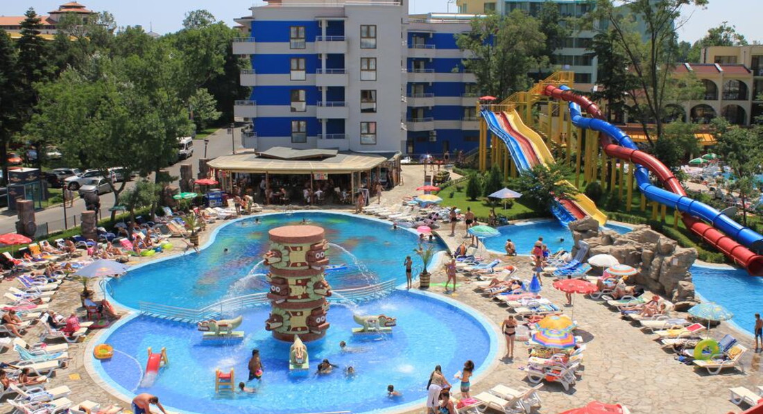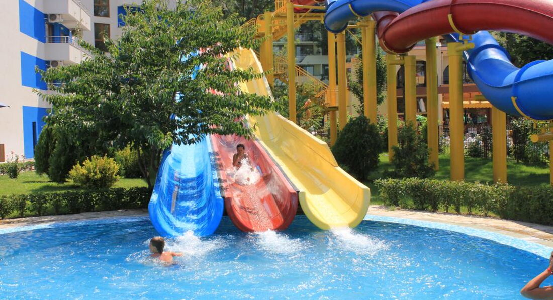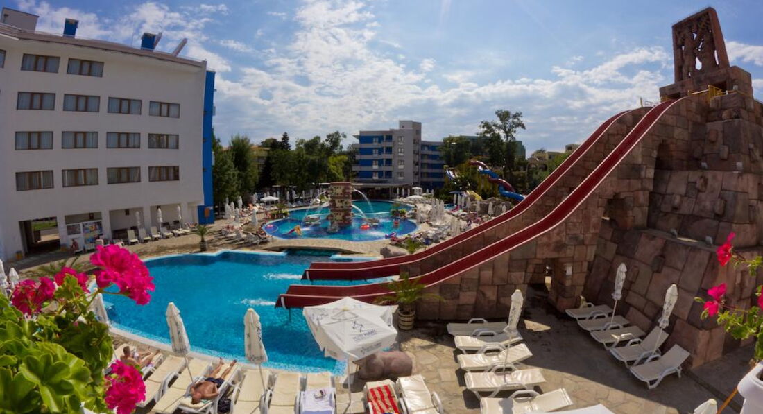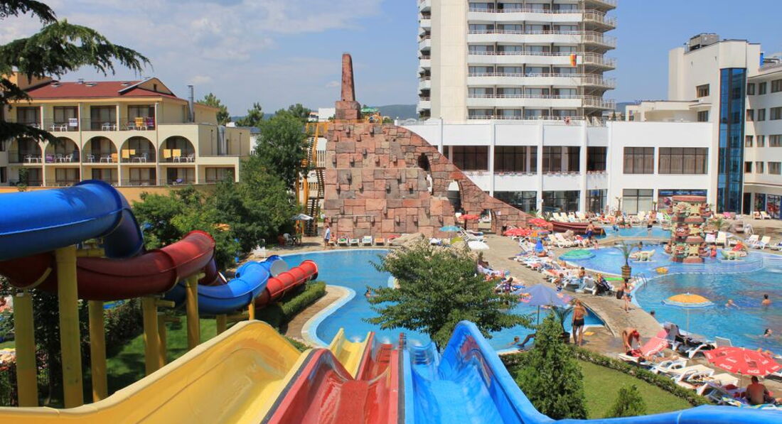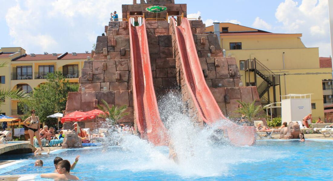 Отель выбрали из-за наличия аквапарка (в большинстве отелей Солнечного Берега /Санни Бич/ горок совсем нет), а не просто бассейна.