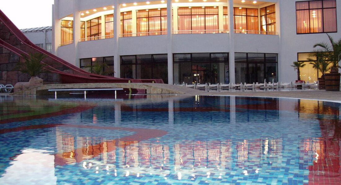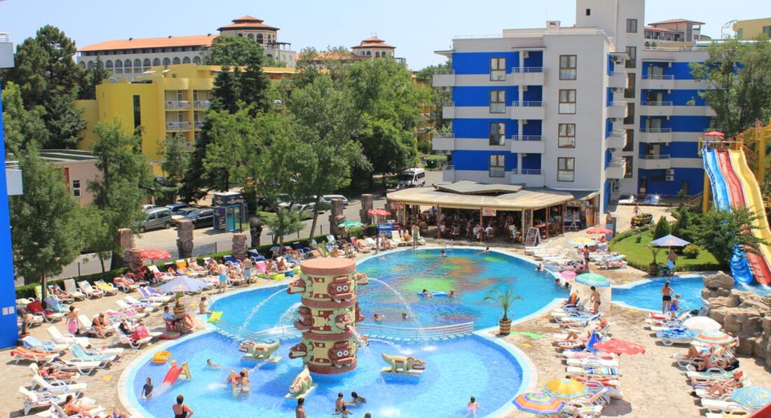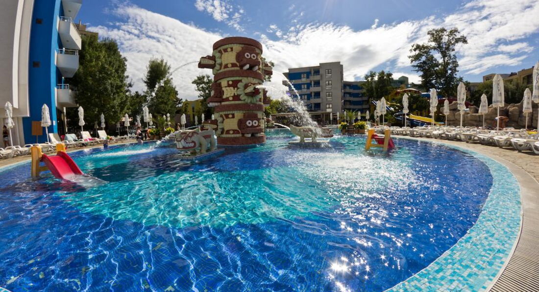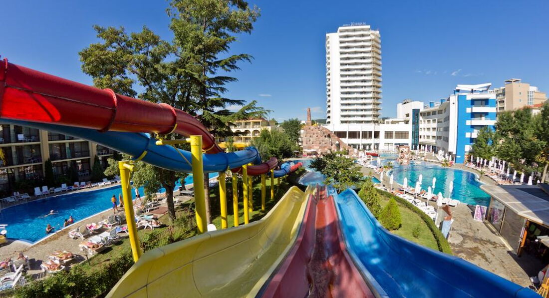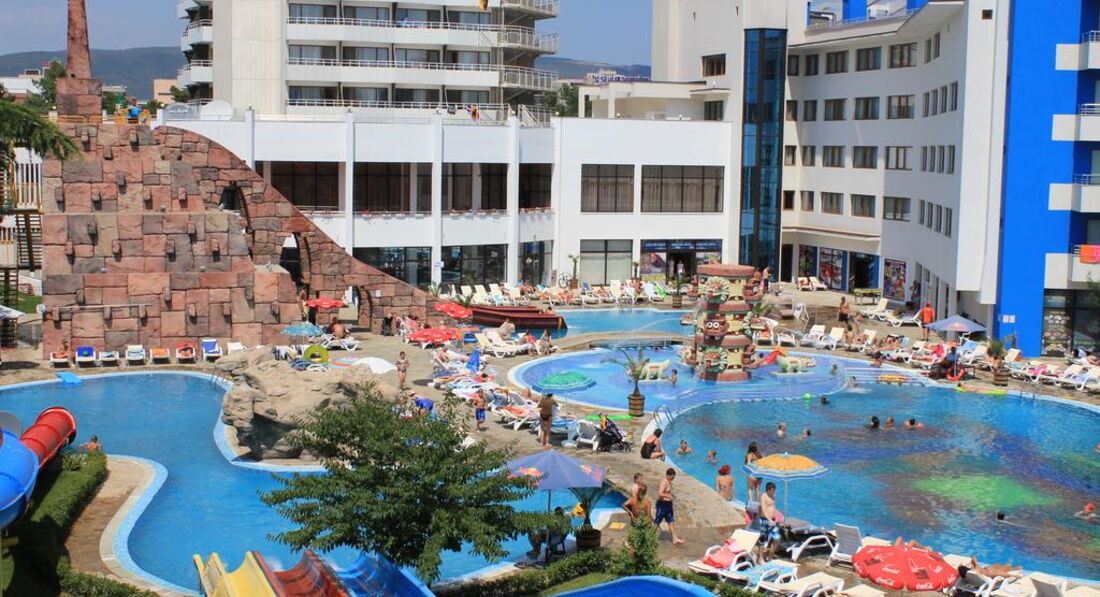 Отель выбрали из-за наличия аквапарка (в большинстве отелей Солнечного Берега /Санни Бич/ горок совсем нет), а не просто бассейна.