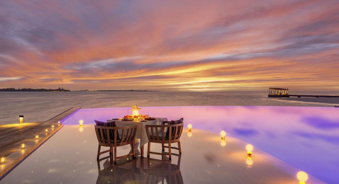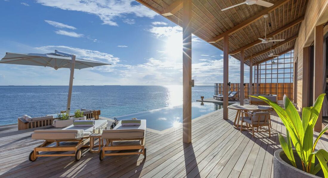 • Ocean Pool Residence Single Bedroom (300 кв. м): тераса з басейном на відкритому повітрі (44 кв. м) та спуском у воду, спальня з вітальнею, ванна кімната з ванною та душем. Номер має відкрите планування: спальня та ванна кімната не розділені дверима. Розташовані на палях над водою. Послуги персонального камердинера