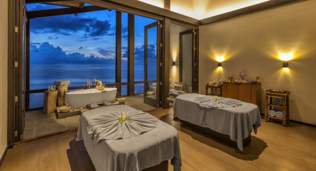 • Ocean Pool Residence Double Bedroom (380 кв. м): тераса з басейном на відкритому повітрі (44 кв. м) і спуском у воду, 2 спальні (одна з вітальнею), 2 ванні кімнати (одна з ванною і душем , друга - із душем). Номер має відкрите планування: одна зі спалень та ванна кімната не розділені дверима. Розташовані на палях над водою. Послуги персонального камердинера