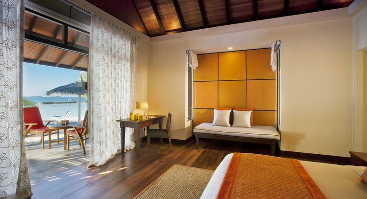 6 Beach Villa with Jacuzzi (103 м2, макс. 3+1 або 2+2+1 inf.). Берегові вілли (4 – окремо стоять, 2 – в одному поєднаному блоці): вітальня, спальня (між вітальнею та спальнею розсувні дерев'яні двері), ліжко king-size. Внутрішній дворик з душем на відкритому повітрі та джакузі, простора ванна кімната з ванною, душем та виходом у міні-садок. Кавомашина Nespresso, DVD-плеєр, акустична система Bose Mini Bluetooth.