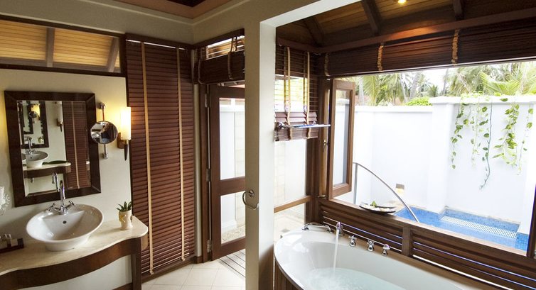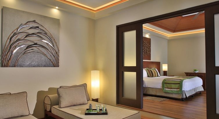 10 Deluxe Pool Villa (160 м2, макс. 3 або 2+2 чол.). 4 вілли – на березі, 4 – у саду з видом на океан. Вітальня та спальня з розсувними дверима, ліжко king-size, басейн у саду, ванна кімната з ванною та душем, душ на відкритому повітрі, тераса з шезлонгами. Кавомашина Nespresso, холодильник, DVD-плеєр, акустична система Bose Mini Bluetooth, приватна альтанка з тахтою.