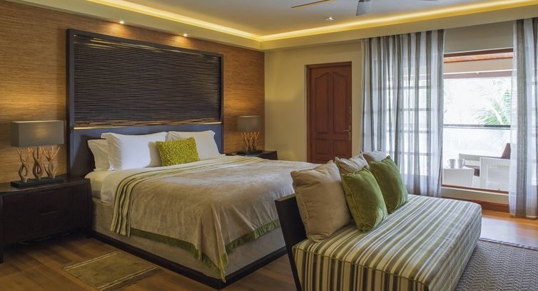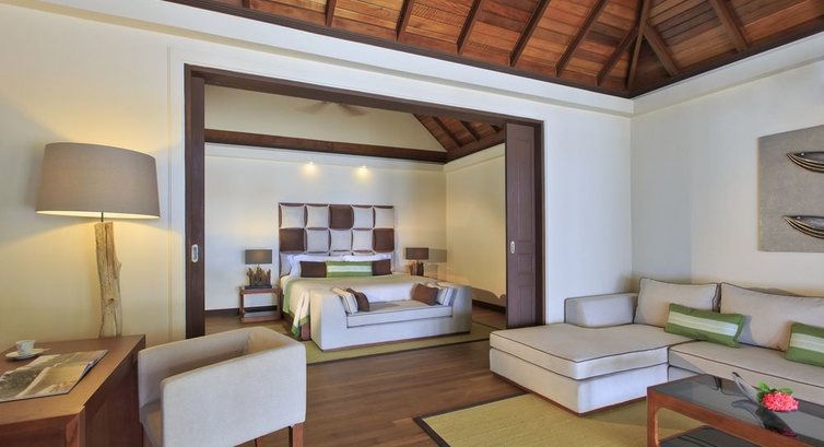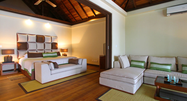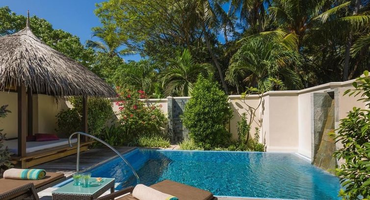 4 Presidential Pool Villa (306 м2, макс. 3 або 2+2+1 inf.). Двоповерхові вілли, що окремо стоять. На 2 поверсі: спальня з ліжком king-size і видом на океан, гардеробна зона, ванна кімната з ванною, внутрішнім душем і душем на відкритому повітрі. На 1 поверсі: зона відпочинку, гостьовий душ, веранда з виходом на пляж, приватний басейн у саду, обідня зона, шезлонги, акустична система Bose Mini Bluetooth, кавоварка Nespresso, винний холодильник, DVD-плеєр. Послуги батлера (24 години).