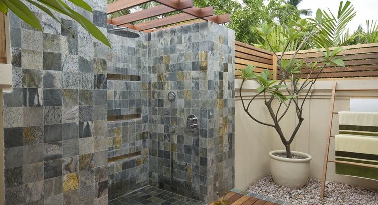 46 Deluxe Bungalow (74 м2, макс. 3 або 2+2 чол.). Одноповерхові бунгало, що окремо стоять, в деякому віддаленні від берега, з видом на пальмовий гай і океан, ліжко king-size або twin, ванна кімната з ванною і душем, душ просто неба в міні-садку, тераса.