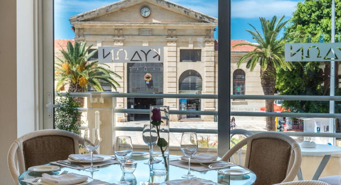 Готель Kydon розташований у самому центрі міста Ханья, прямо навпроти центрального ринку і всього за кілька хвилин ходьби від Старого міста та Венеціанського порту. З більшості номерів відкривається панорамний краєвид на Критське море. Готель підходить для сімейного відпочинку з дітьми, активного відпочинку молодіжного відпочинку, ділових поїздок.