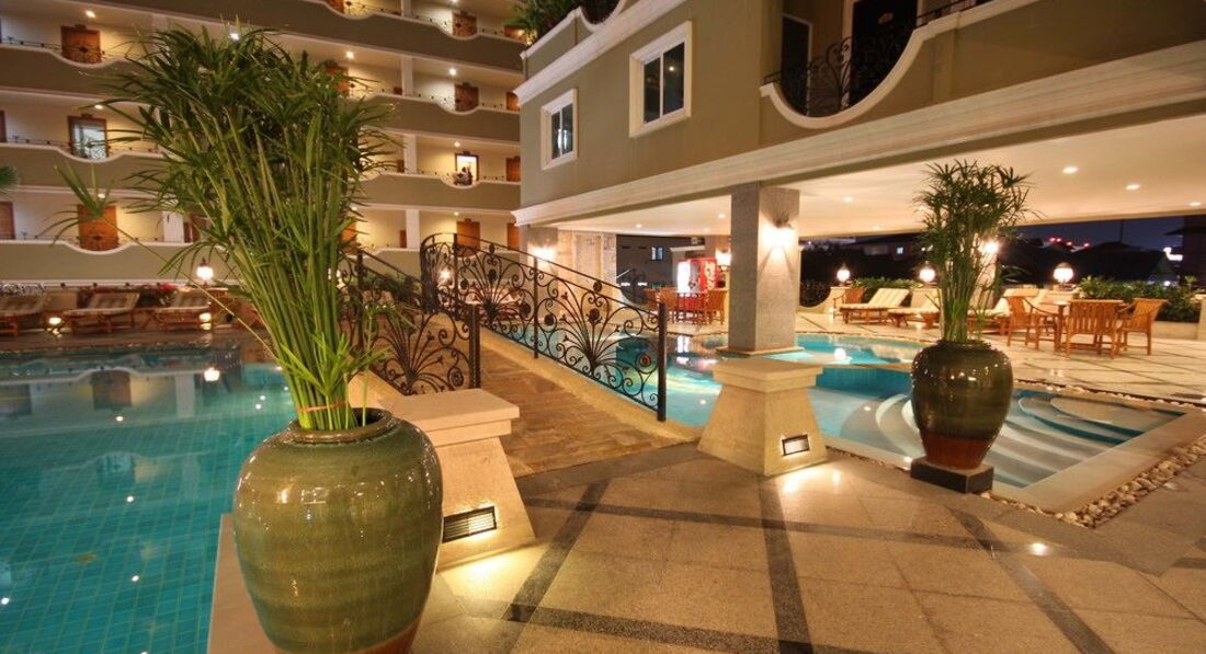Всем привет! отдыхали с мужем в этом отеле с 25 декабря по 7 января 2014 года, отель расположен на третьей линии, звучит страшно, но на самом деле это 5 мнут ходьбы по одной улочке до Фестиваля, нас это вообще не обламывало! рядом куча массажных салоном, супер маркет фэмэли март, бары. Заселили быстро хотя приехали мы раньше времени заселения, взяли 1000 батт на депозит, при выезде без проблем вернули, нам вернули не все так как мы воспользовались мини баром! в номерах убирались каждый день, белье менялось постоянно, так как номер у нас был стандарт поселили нас не в главный корпус, а в корпус Wing на третий этаж, номер был достаточно просторный для стандарта, все чисто, красиво ни чего не сломано, есть все необходимое, телевизор плазма, wi fi бесплатный! в описании отеля написано что нет тренажерного зала, это вранье он там есть в главном корпусе рядом с бассейном, в нашем корпусе был бассейн на крыше, на 8 этаже, в главном корпусе бассейн на втором этаже расположен не удачно, там постоянная тень, в описании так же написано, что нет балконов, опять врут балконы у нас были. На завтрак кормили прекрасно, большой выбор блюд, много фруктов, бананы и арбузы и ананасы и дыня и еще что то было, и омлеты тут же готовят и горячее каждый день новое, йогурты, хлопья, выпечка, овощи вобщем выбор есть, голодными точно не останетесь, в нашем корпусе был бесплатный бильярд, частенько с мужем играли) Всем советуем этот отель, сами еще раз бы туда поехали! Всем удачного отдыха, пока!!!