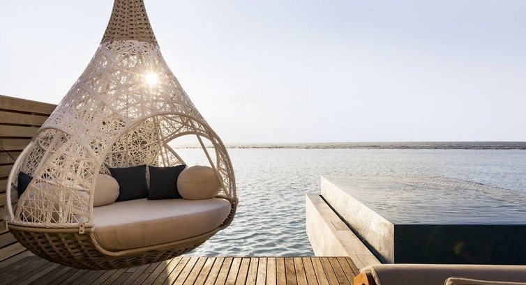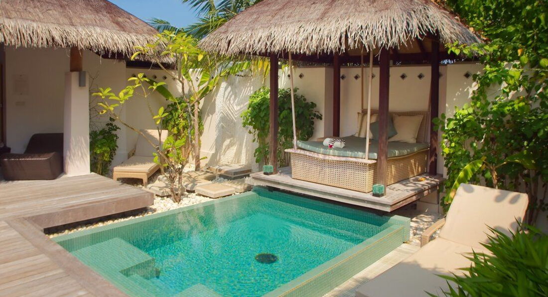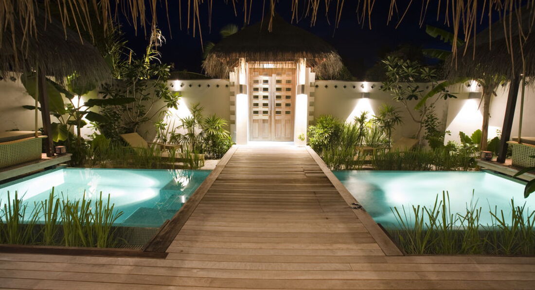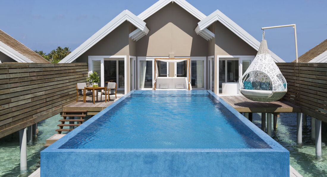 46 Romantic Pool Water Villa (110 м ², макс. 2 чол.). Розташовані на палях у лагуні, поєднуються з островом дерев'яними настилами. Тераса з приватним басейном та прямим спуском у воду. Ванна кімната з душем і душ на відкритому повітрі. Розташування вілл ідеально підходить для снорклінгу. Усі вілли з видом на світанок.