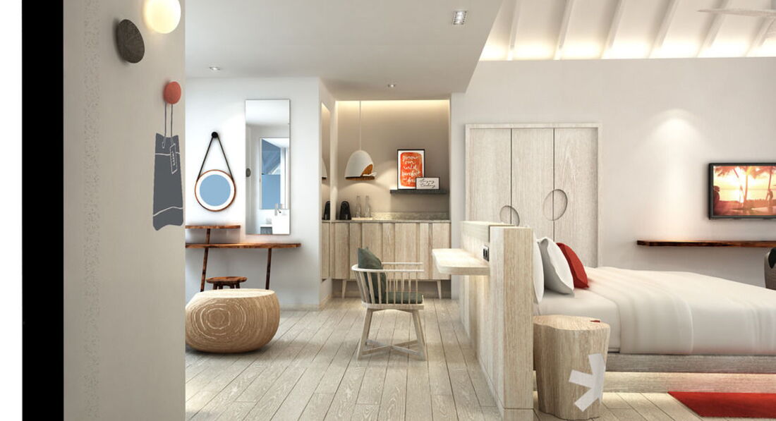 38 Water Villa (98 м², макс. 3 або 2+1 чол.). Водні вілли розташовані на західній стороні острова. Ванна кімната з видом на лагуну, велика тераса із прямим спуском у воду.