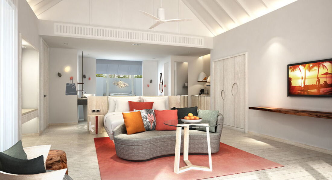3 Temptation Pool Water Villa (220 м ², макс. 2 чол.). Просторі водяні вілли з видом на світанку. Спальня з ліжком king-size, окрема вітальня зі скляною панеллю в підлозі, ванна кімната з джакузі та душем, душ на відкритому повітрі. Тераса з приватним басейном (довжина – 14 м), прямий спуск у воду.