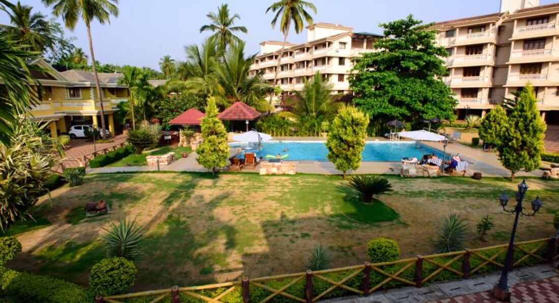 Отдыхали в Гоа впервые. Были семьёй из 6 человек, в том числе 2 детей 1 год и 7 лет. Отель хороший, на фоне остальных вариантов в Бенаулиме выглядит самым лучшим. Отдыхающие, в основном, россияне и индусы. Иностранцев мало было. Понравилась ухоженная, красивая территория отеля с разнообразной растительностью. Персонал вежливый, очень приветливый и обходительный. Жили в апартаментах на 4 этаже. Кухня пустая, как уже писали, но по нашей просьбе принесли плитку и посуду для неё. Сыну варила гречку несколько раз. Как только мы приехали, чистили бассейн, потом вода была чистая, купались. На пляж ездили на их бесплатном автобусе или ходили пешком. С утра нормально прогуляться, но в жару с пляжа тяжело. Переписали расписание автобуса и старались попасть на него. Единственный минус отеля - это плохая уборка в номерах. Пол не моют толком в номере, только в ванной. я так поняла, что для них это чисто считается. Босиком и в носках ходить невозможно, сразу чёрные. Везде пыль. И убирают мальчишки лет 15-16-ти. В воскресение сломался лифт, но в понедельник починили. В номере куча выключателей, по 12 штук на стене. До конца во всех не разобрались. Постельное бельё и полотенца белые, чистые. Сейфом не пользовались, так как начитались отзывов о о воровстве. Носили всё с собой. Ресторан в отеле неплохой, но меню скучноватое. Очень долго готовят. Завтраки не шикарные, но голодным не останешься. Была Новогодняя программа в отеле, буфет. Но дорого, на одного человека 4000 рупий. Так как с детьми не посидишь долго, решили заказать еду в номер. Смотрели Иронию Судьбы по Первому каналу)))) На экскурсии ездили со знакомым наших друзей, который бронировал для нас отель и встречал в аэропорту. Поэтому вышло недорого, за дорогу 3000 рупий за всех, плюс сами оплачивали билеты. Были на водопадах, плантации специй и в старом Гоа в соборе св.Франциска. В целом, для Гоа, очень хороший отель. Рекомендую.