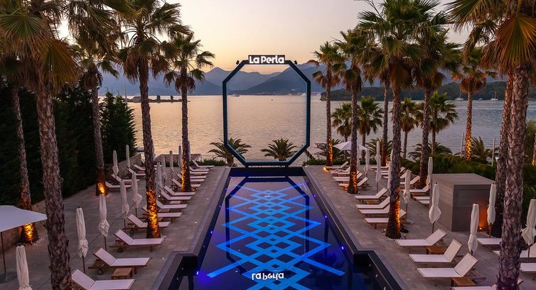 Готель розташований у маленькому селі Джурашевичі на північному березі півострова Люштиця Боко-Которської бухти. La Perla є унікальним місцем для спокійного відпочинку в Чорногорії.