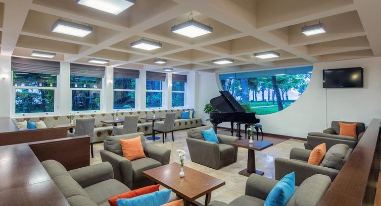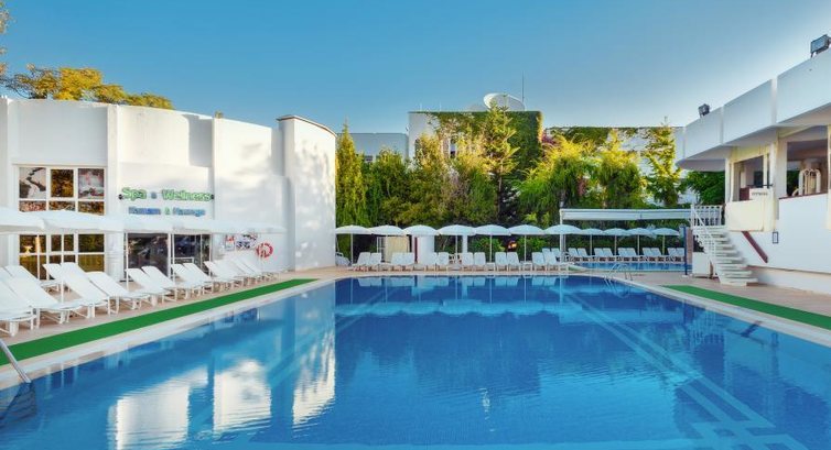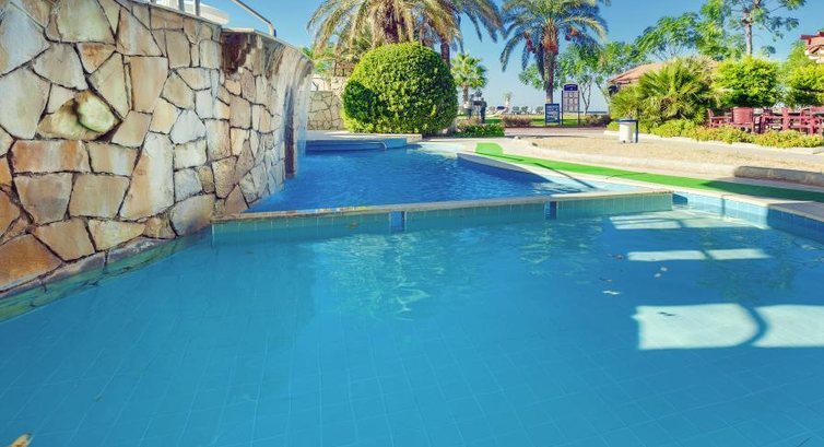 Отдыхали в этом отеле с 28 мая по 6 июня 2015. Отдыхали семьей с друзьями. Нас было 4 семьи. Дети 3-4 лет, 9-11. Хочу сказать сразу, что отель не плохой. Жалко, что не доверились отзывам, о том, что в море при нашем отеле впадает река. А зря, температура воды в море оставляла желать лучшего. Думали, может это время отдыха сказалось, да нет. Друзья отдыхали рядом в другом отеле-море теплое. Это, конечно, омрачило наш отдых, т.к. мы ехали на море! Купались, конечно, много, но не охотно и без особого удовольствия. Все, что касается остального-повторяться не буду. Очень красивая территория, зеленая, цветущая. Питание-обыкновенное, без излишеств. Анимация для взрослых не плохая, а вот детская никакая! Детками никто не заинтересован, бегали наши на диско, да и все! Спасали горочки и детская площадка! Отдельно хочу сказать про представителя при отеле от Анекс-тур Елену (правду не говорит, советует свои экскурсии, лукавит). Очень удобно, что от отеля перемещается свой транспорт, 10-12 минут от отеля и вы в центре! Экскурсии брали Дино-парк и Океанариум для детей. С детьми ездил супруг, сказал, что Дино-парк интересный, а вот Океанариум развод! Еще брали индивидуальную рыбалку на свою компанию, очень понравилось-хорошо провели время, наловили форели, нам из нее приготовили уху, барашек на вертеле приготовили. Детки не скучали, так как есть горочки, детская площадка и мини-зоопарк. Мы ловили-они развлекались. Очень не плохо-советую! Уехали после завтрака-вернулись часов в 17. Что еще не понравилось, что при заселении в отель-браслеты не одевают, кто то скажет, ну и что? Да то, что пропускная система никакая, охранник просто не может всех запомнить в лицо, так как отдыхающих много. Так вот на завтрак народу немного, а на ужин невозможно стол занять.... А потом пару раз за ужином наблюдали картины: то женщина пришла из отеля 3* и нахваливала наш ужин, так как у них плохо кормили, решила покушать на территории нашего отеля, то другая женщина кушала-кушала, а потом спрашивала, как называется "наш" отель... Вообщем, браслеты просто необходимы, так как наш "пострел везде поспел". Мне не жалко-но очереди набирались и стоять за мясом 15 минут, ой, как не хотелось... Завершив свой отзыв, хочу отметить, что отель неплохой за не очень большие деньги. Поеду ли сюда вновь? Врятли, уж больно море холодное! Всем отличного отдыха!