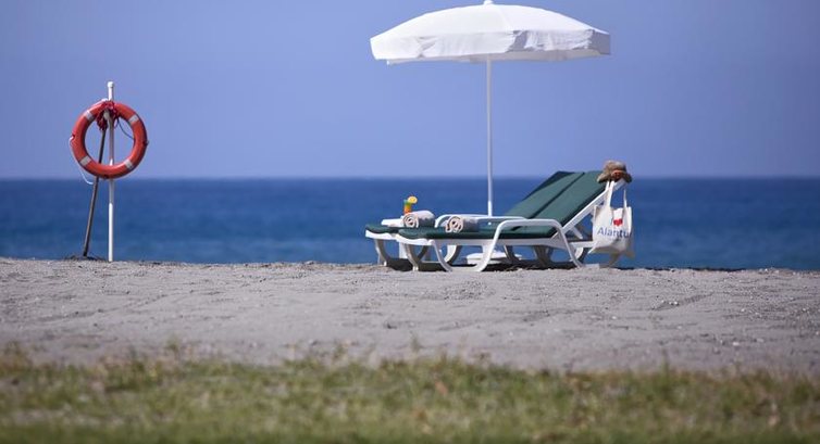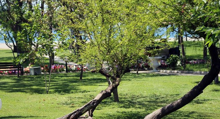 - Большая протяженность пляжа, возможность загорать на траве под деревьями/под навесами/непосредственно у моря.
