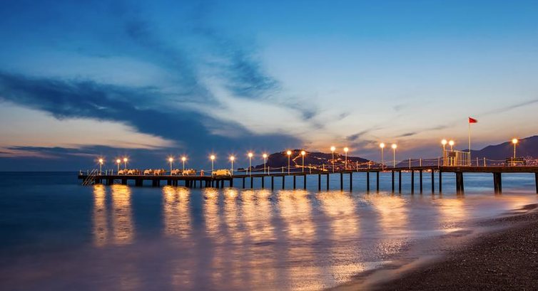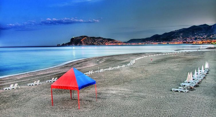 Расположен очень удачно относительно Алании.А какой вид на город открывается с пляжа!Вечером вообще отпад)))