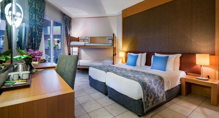 Были в отеле с 24 июля, по 1 августа 2015 года. Приехали в 9 утра, чтобы не сидеть до 2, смазали, отношение изменилось и номер нашелся. Дали номер на 1 этаже, но это даже плюс, есть второй вход. Номера большие, и ванные комнаты большие и удобные. Но есть минус кондер, он центральный и расположен не над дверью как чаще всего, а так что дует прямо на кровать, на ночь приходилось выключать. Питание не плохое, но разнообразием не впечатляет, даже в разделе сладостей. Как показатель в большинстве отелей где были до этого всегда есть жареная курица или индейка для тех кто ест только ее и фри (многие дети 5-10 у моих знакомых питаются из того что там есть именно этим), в этом отели жаренная курица за неделю была 3 раза. Один день на обед было вообще нечего есть кроме макарон с соусом. и печень жаренная (причем пережаренная и жесткая). не критично конечно можно перекусить и в снек баре. Мороженное кстати после обеда в детском городке у этого снек бара, стоит маленький холодильник и никого нет, подходишь и берешь сколько надо, оно в упаковке.