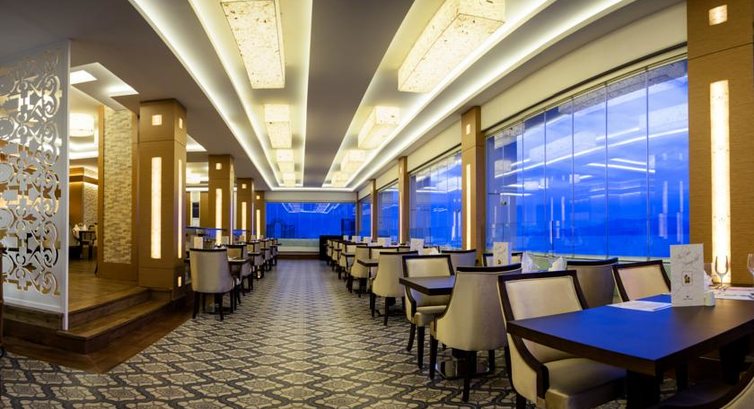 Бари та ресторани: головний ресторан – міжнародна кухня, на 750 чол., критий, з терасою; бар на пляжі (11:00-18:00), бар біля басейну (11:00-23:00), лобі-бар (17:00-24:00), диско-бар (23:00-02:00) ) - безкоштовно, бар "English Pub" (21:00-01:00) - платно. 4 ресторани А"la carte: рибний, італійський, міжнародний, турецький - тільки у вечірньому одязі, відвідування кожного ресторану за тиждень проживання безкоштовно.