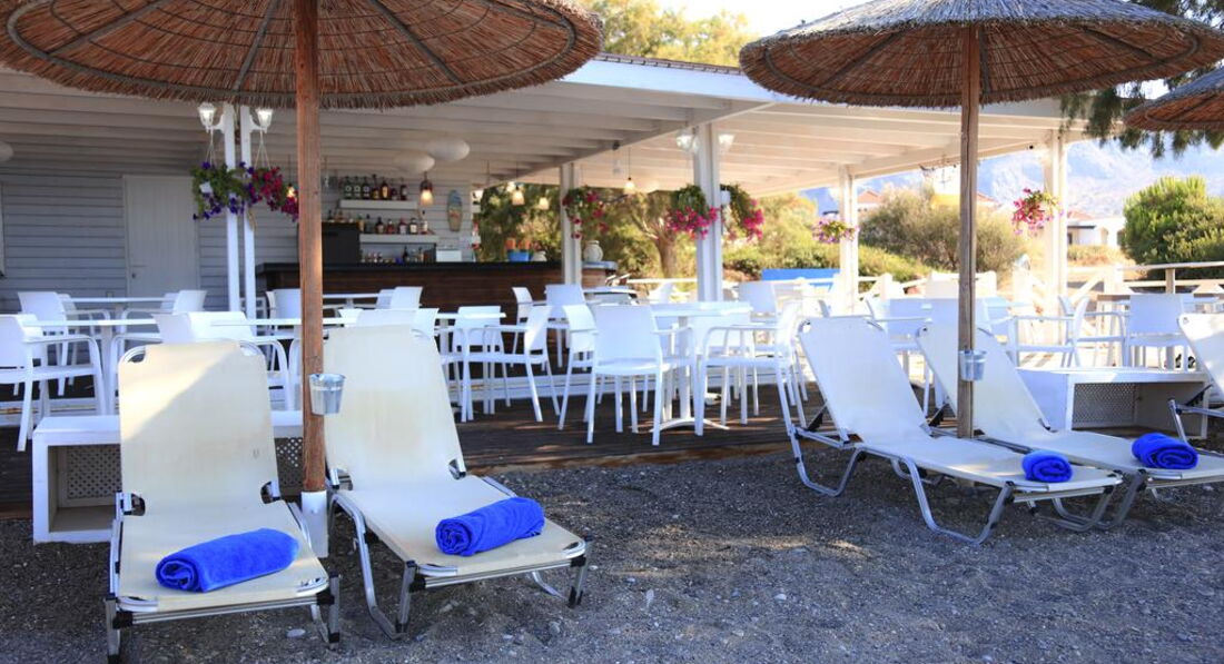 • місцеві алкогольні та безалкогольні напої (чай, кава, лимонад, апельсиновий сік, кола, тонік, содова, вино, пиво, узо, горілка, ром, джин) – з 10.00 до 24.00 у барі «Kiotari Bay» біля басейну. У таверні «Dionyssos» протягом дня, окрім часу основного харчування