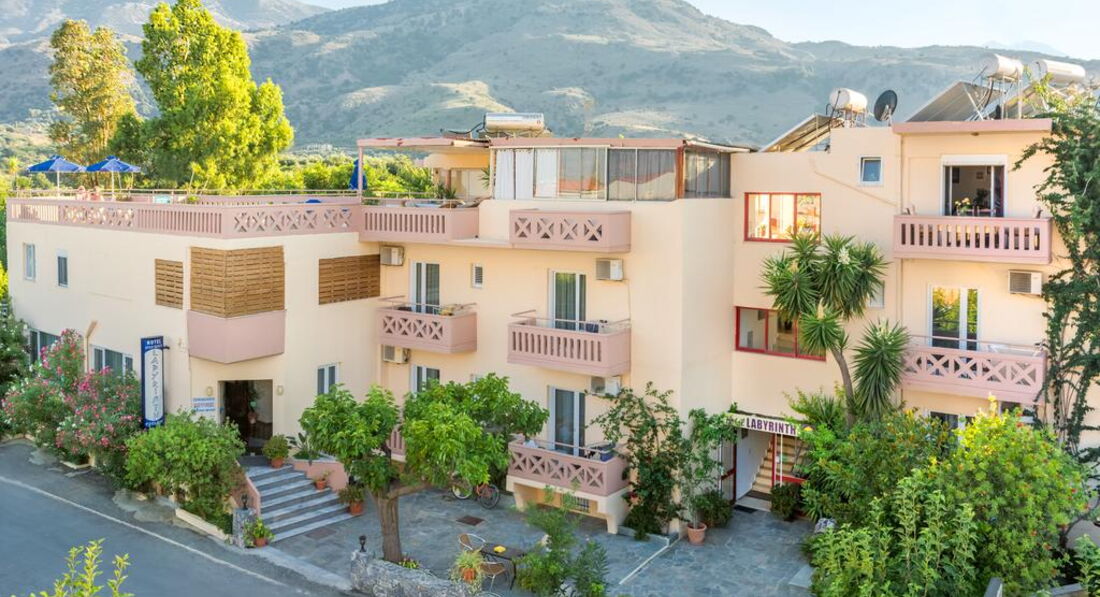 Готель Labyrinth розташований у курортному селі Георгіуполіс на північному узбережжі Криту. Готель оточений садом і знаходиться всього за 300 метрів від пляжу. Центр села всього за 200 метрів, там можна відвідати ресторани, супермаркети та різні магазинчики. Готель частково оновлений у 2016 році. Підійде для сімейного економічного відпочинку.