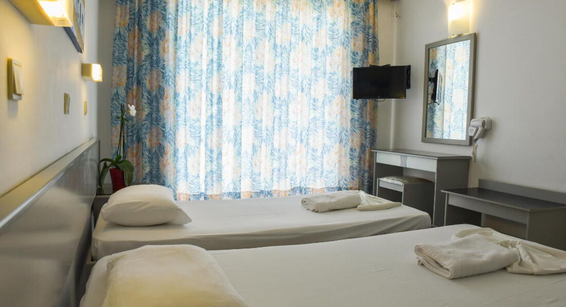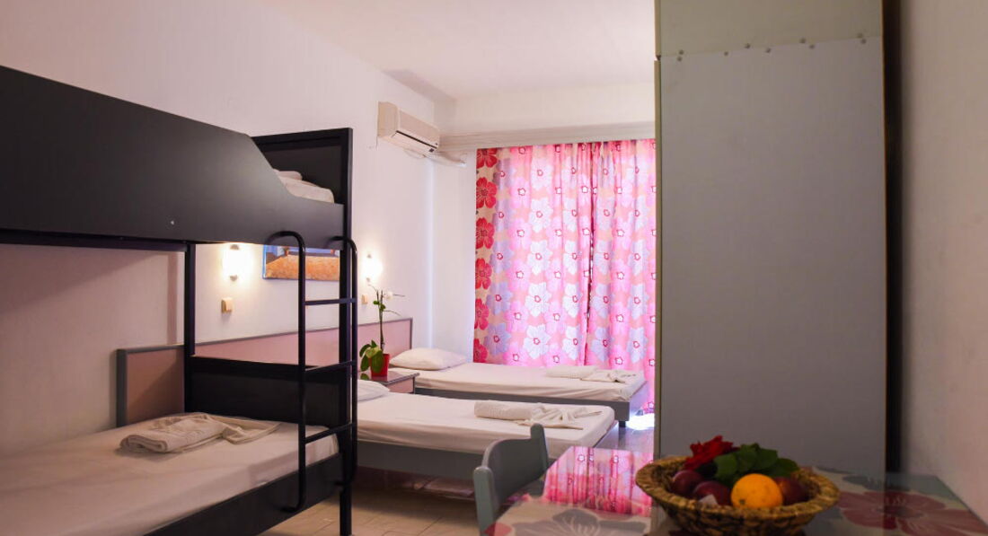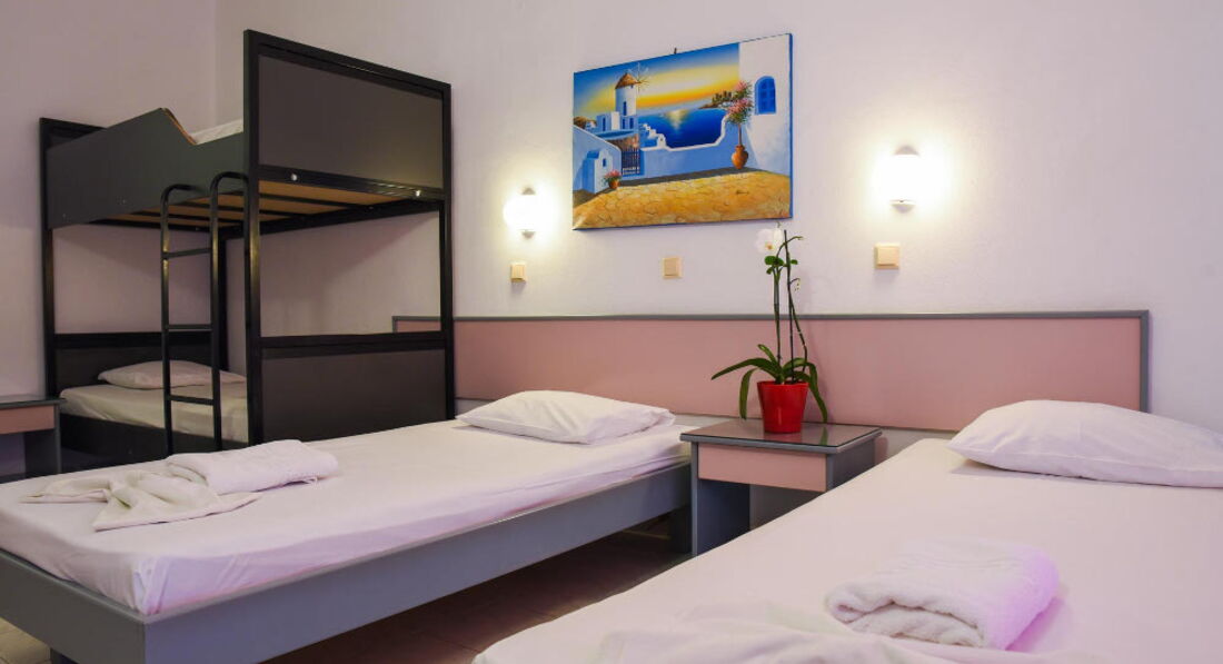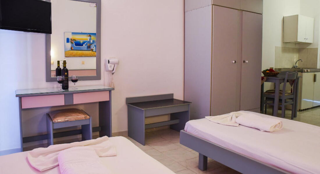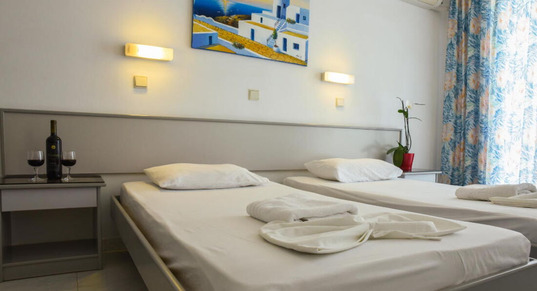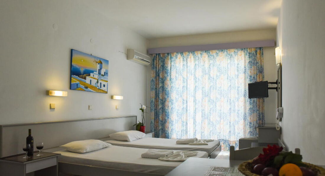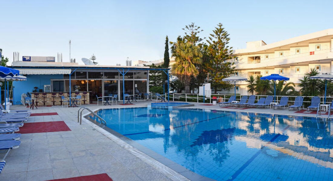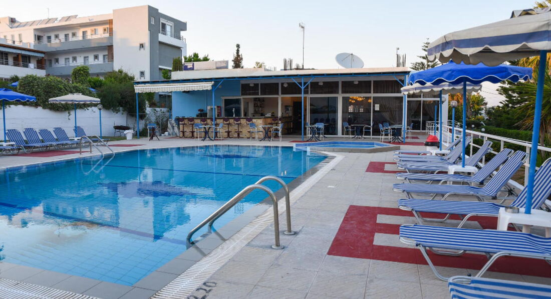 Невеликий затишний готель із зеленою територією та відкритим басейном. Складається із двох будівель, всього 43 номери. Розташований у селищі Фаліракі, за 100 метрів від пляжу. Поруч із готелем розташовані супермаркети, ресторани та пункти прокату автомобілів. Готель відкритий з березня до жовтня.