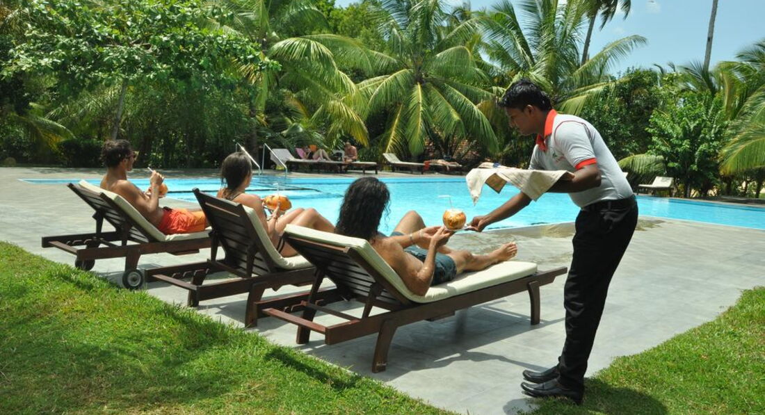 мы на шри ланке второй раз. в прошлом году были в диквелле. в этом решили съездить в тангалле.отель от города далеко, пешком не находишся только на туктуке за 250 рупп ..соответственно отельный ресторан этим пользуеться и цены очень завышают. номера в новом корпусе хорошие, чистенькие но за дополнительную плату, а старый корпус на первом этаже просто ужас. мы жили на втором этаже, если только для ночевок то пойдет. в этом отеле мы были две недели, у нас были только завтраки, одообразно но голодными не останетесь. абсолютно все работники отеля улыбчивые и приветливые люди. территория отеля чистая и ухоженная. на ресепшене Рукмаль решит все ваши вопросы. очень красивый восход солнца на океане и на реке. по территории ходят вараны, павлины, бурундуки ,огромное количество птиц. один раз мы видели целую стаю обезьян, прямо на территории отеля.можем рекомендовать этот отель для туристов проездом на оду две ночи, или кому отдых возле басейна и более ничего не надо.мы с мужем каждый день ездили в диквеллу к сингальским друзьям там всё в три раза дешевле экскурсии ужины магазины если кому интересно могу дать адрес Маду он все сделает на высшем уровне а если скажете что от меня то все будет супер я сдесь не могу делать рекламу так что пишите на мою почту