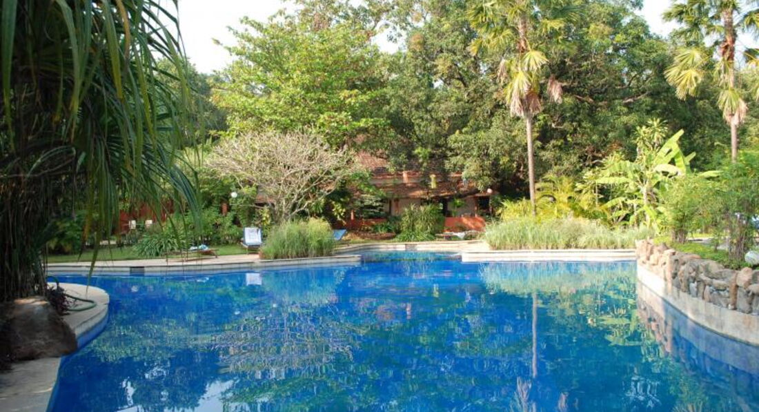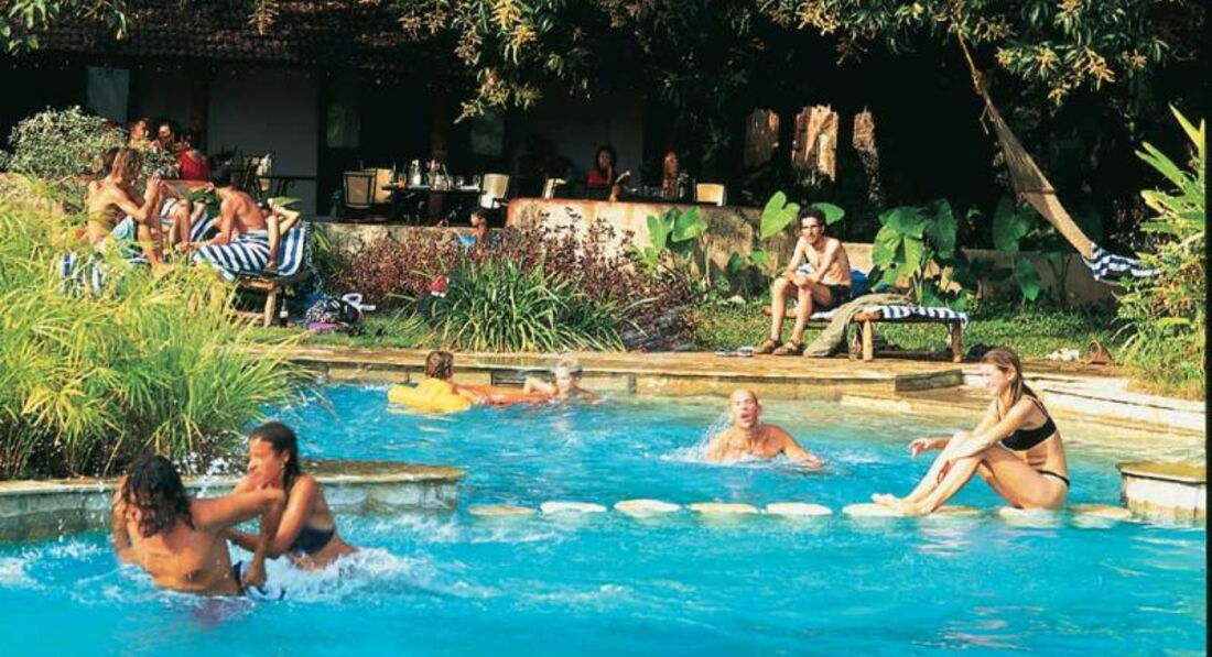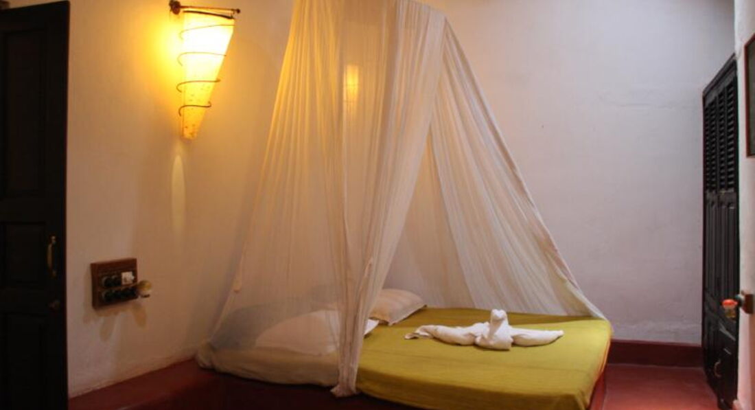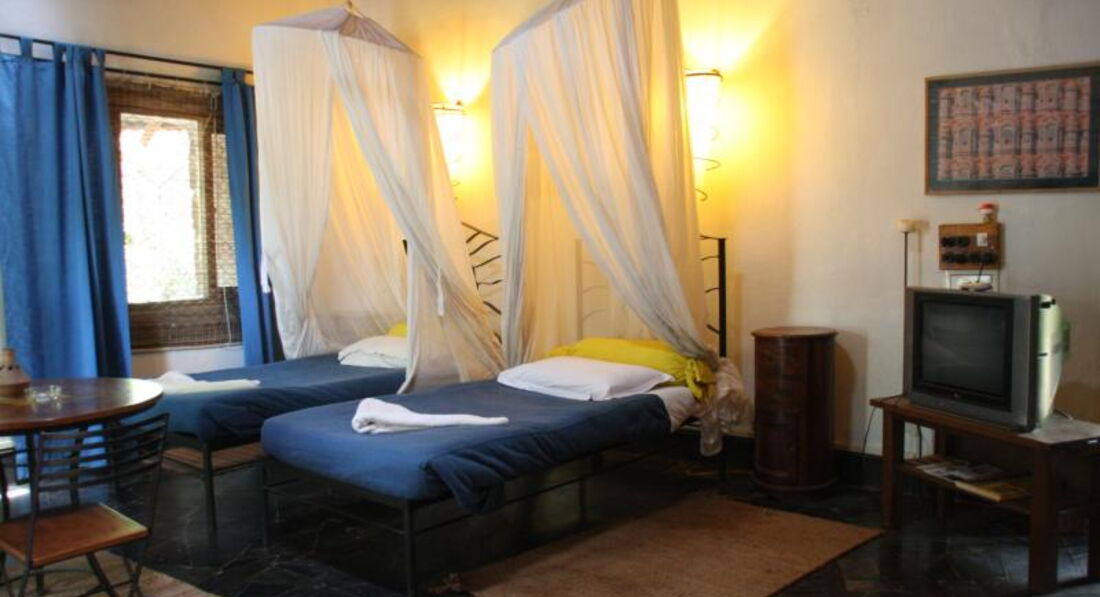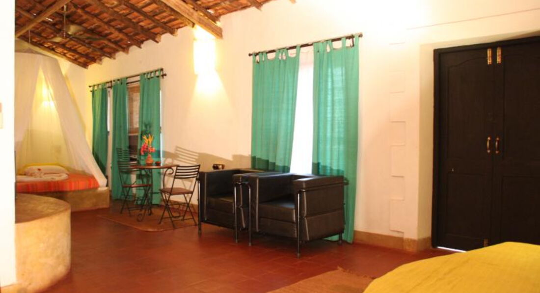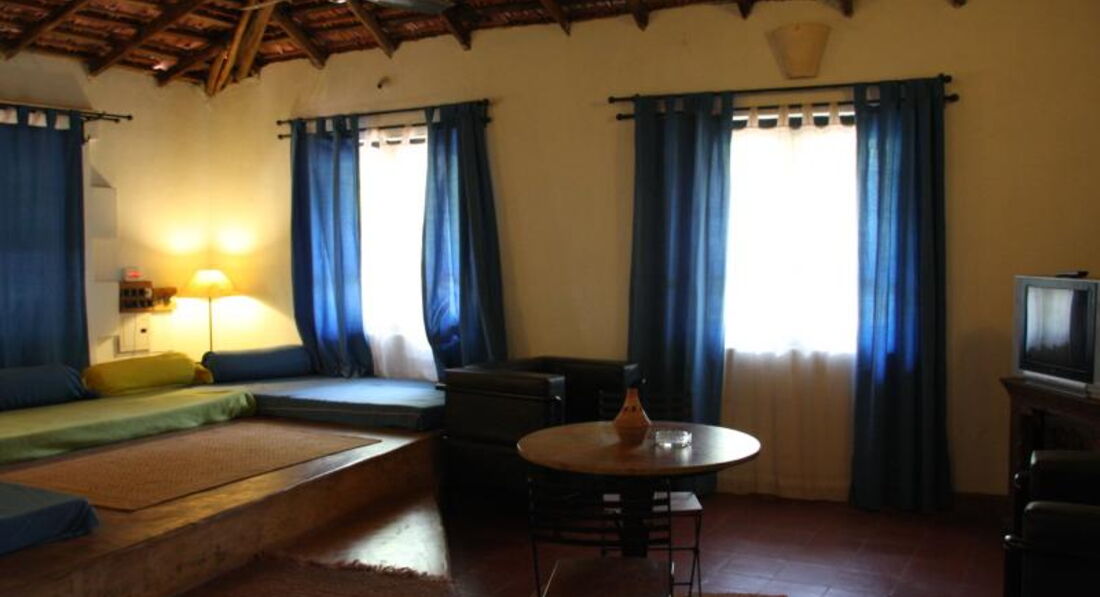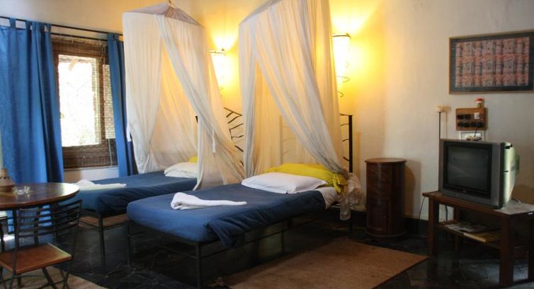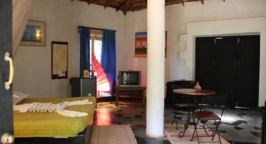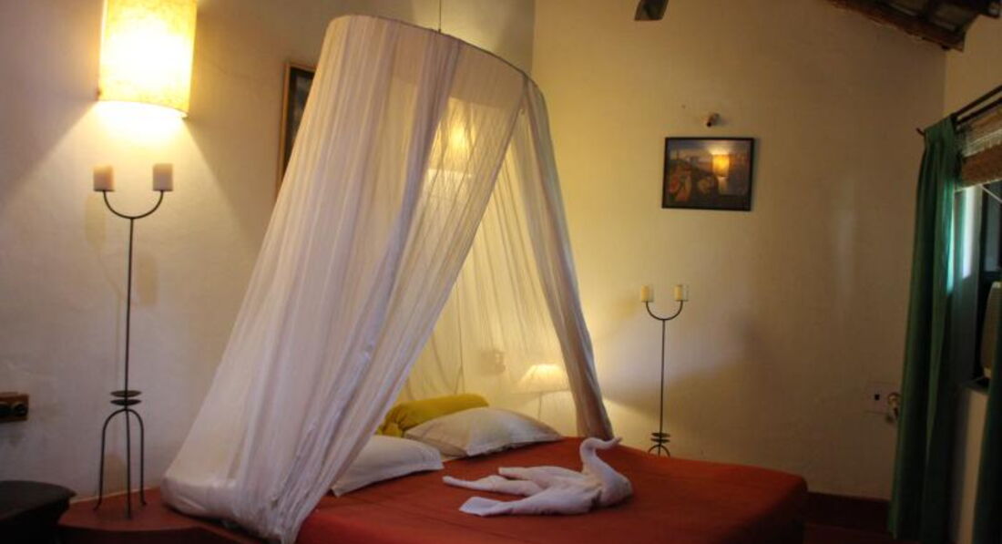 Отель находится в Анджуне. Дорога к отелю через парк. Сама территория отеля очень зеленая – парк. От магазинов чуть далековато – нужно ехать на такси. Пляж в 700 м от отеля – 6-7 минут пешком. Все комнаты разные, рассчитаны на 4-6 человек. Все кровати с балдахинами. В номере телевизор, холодильник, кондиционер, ванна. Отель бунгального типа – на любителя.