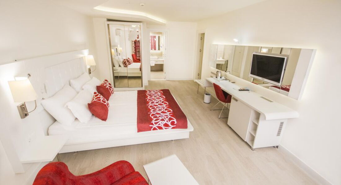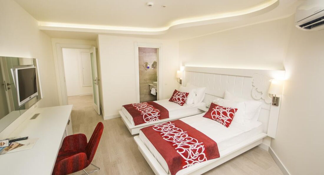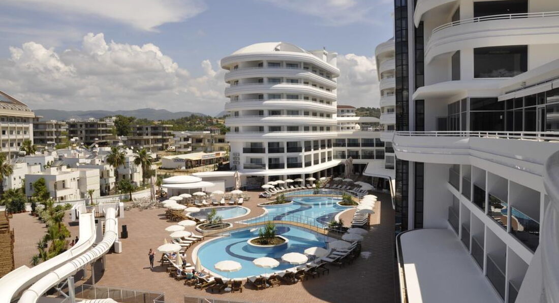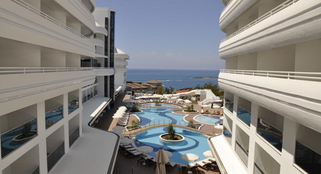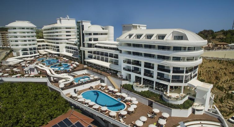 Територія та послуги: • спа центр • хімчистка • перукарня • бари: 5 • ресторани: 1 (основний) • ресторани a la carte: 2 (турецька та італійська – за попереднім записом, за весь період проживання відвідування одного з ресторанів безкоштовно) • пральня • басейни: 3 (відкриті) • біля басейну рушники: безкоштовно • біля басейну парасольки, шезлонги, матраци: безкоштовно • водні гірки: 2 • Wi-Fi безкоштовно (на всій території готелю) • Кабінет лікаря • магазини Розваги та спорт: • сауна безкоштовно • парна безкоштовно • аеробіка безкоштовно • дискотека безкоштовно (вхід) • ігрові автомати платно • джакузі платно • масаж платно • більярд платно • тренажерний зал безкоштовно • турецька лазня (хаммам) безкоштовно • аквааеробіка безкоштовно • дартс безкоштовно • водні види спорту платно • настільний теніс безкоштовно • анімація безкоштовно Для дітей: • дитячий майданчик • дитячий басейн: є • дитячий клуб (4–12 років) • послуги няні: платно Живлення: • Все включено Пляж: Власний піщано-гальковий пляж за 150 м від готелю. Автобус до пляжу безкоштовно протягом дня. На пляжі парасольки, шезлонги, матраци, рушники: безкоштовно.