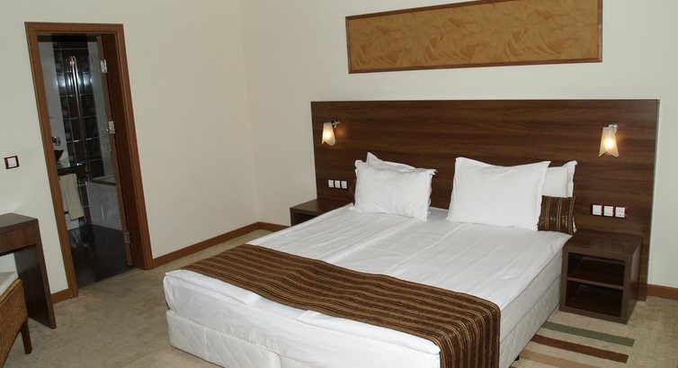 Здравствуйте читатели! Вот решила написать отзыв об этом отеле. Отдыхала я с семьей и друзьями. Взяли путевки мы на начало июня, как раз были скидки кажется до 10 июня. У нас путевка была с 6 по 12 июня. Первое впечатление было хорошее. На рецепшн нам сказали что номера дают только после трех. Да и мы приехали в отель в час. Как раз был обед. Но на рецепшн сказали что обед этот не входит.Хорошо что наши друзья приехали раньше нас на два дня и взяли нам что нибудь поесть из ресторана.Потом поселили нас в номер, мы жили в основном корпусе. Попался угловой номер, самый большой и просторный. В номерах конечно просто супер: плазма , хороший балкон, диван в комнате. Никаких минусов в номере не было. Насчет еды вот что скажу фрукты выносили один только раз, если не успел то опоздал. Но если скандал закатишь, тогда тебе вынесут еще. Еда была не очень разнообразная до 10 июня, потому что был период скидок.После 10 появились и гриль и все остальное. Вообщем хитро придумали. На завтрак отключали все кофе машины и накрывали их. Утро проходило без кофе. Но это же мы))))). Мы каждое утро поднимали салфетку включали аппарат и делали себе кофе. Так рабочие постоянно ругались. Был один тематический вечер за неделю- болгарский. Мне понравилось. После 22.00 закрывался пул бар и даже воды попить было негде. Это семейный отель, потому что после 22.00 не только воды, но и людей не было. Все ложились спать. Одни мы сидели и общались. Алкоголь и ресторана нельзя выносить. Поэтому ходили на ужин с бутылкой пластмассовой, чтобы вечером можно было расслабиться. Пул бар готовил вкусные коктейли.Пиццу выдавали только по одному разу.Пляж хороший. Так как вечером делать было нечего шли рядом в отель Santa Marina. Там все почти русские были. Отдыхаю в Болгарии уже где то 6 раз. Я считаю что этот отель очень экономил на питании. Была даже в тройке на Солнечном берегу в Хризантеме, и то лучше кормят.