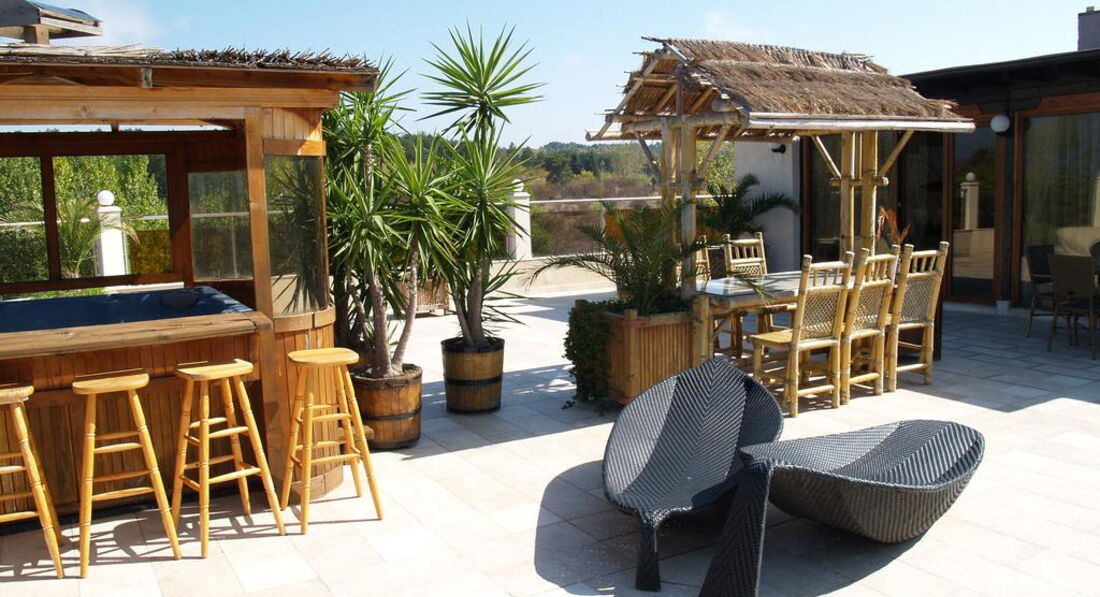 Готель складається з двох 4-поверхових будівель та шести 3-поверхових вілл.
