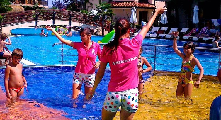 Отдыхали в этом отеле втроем (1 взр + 2 детей: 3 года и 10 лет). Отель не выбирали, а были поставлены перед фактом, т.к. именно в этом отеле у знакомых в собственности апартаменты, а ехали из-за детей, чтобы они вместе провели каникулы. В Болгарии первый раз, всегда считали ,что это не то место, где можно провести отпуск на море. Ехали несколько настороженно, готовились к отдыху а-ля Краснодарский край. Но были приятно удивлены. Всем. Морем (чистейшее, как слеза, песочек мелкий, чистый, дно без ила и тины, глубина самая подходящая - и для маленькой, и для старшего: первые метров 20 мелководье, а потом оптимально для плавания), самим отелем (все новое, в рабочем состоянии, интерьер со вкусом, народу немного, весь персонал приветлив, убирались хорошо), питанием (без изысков, но все вкусно - мясо 2-3 вида, обязательно рыба, супы - не баланда как в Турции и в Египте, а нормальная куриная лапша, мясо-овощные бульоны, иногда холодный суп по типу окрошки, овощи, фрукты - арбузы, дыни, черешня, клубника, персики, нектарины, абрикосы; из минусов - не было соков и каш). Анимации в отеле нет (не было в период нашего проживания). Нам это было не надо. Но кому это принципиально, учтите.