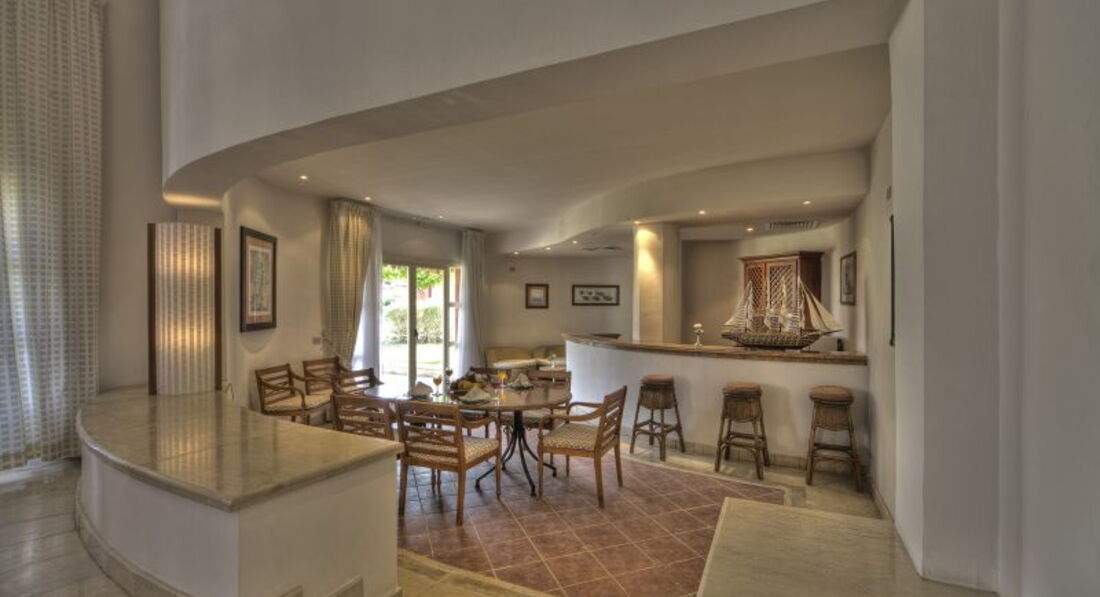 Отдыхала в январе 2007 года одна (очень хотелось вырваться из холодной Москвы и отдохнуть от работы). Попала по акции за 16000 р на неделю и жила в огромном бунгало. Мне понравилось в отеле все. Отель был ориентирован на итальянцев. Русских было 5-10% всего. Отличная кухня. Огромный выбор блюд из европейской и итальянской кухни в основном. Везде все чисто и красиво. Сам отель в виде мексиканской деревни. Крытый (с подогревом) и открытые бассейны (открытый при мне закрыли на ремонт). Шикарная анимация: ребята вкалывали с утра и до ночи. Хорошо что в анимации были русскоговорящие (их набирали в Италии из студентов из бывших советских республик) поэтому проблем не было. Такой анимации нигде больше не видела. Причем одновременно и на пляже и у бассейна и для детей и пр. Единственный минус это не было пантона для захода в море. Его снесло за пару месяцев до нашего приезда штормом (так сказали). На хороший пантон соседнего отеля справа (если на море смотреть) нас не пускали. А с пантона отеля слева была глубина по пояс. До моря от берега примерно километр. Метров 300 тебе по щиколотку, еще метров 300 и тебе по колено- по пояс. Приходилось брать экскурсии на яхте чтоб поплавать в море и посмотреть кораллы и рыб. Зато для семей с маленькими детками идеально. Заход песочек. Ни камней, ни кораллов, ни ракушек. И можно быть спокойным что детки барахтаются в чистой морской воде и с ними ничего не будет. За неделю отлично отдохнула и набралась положительных эмоций.