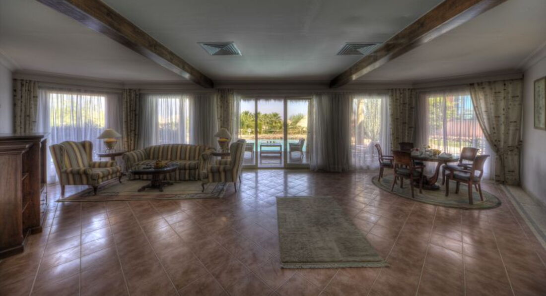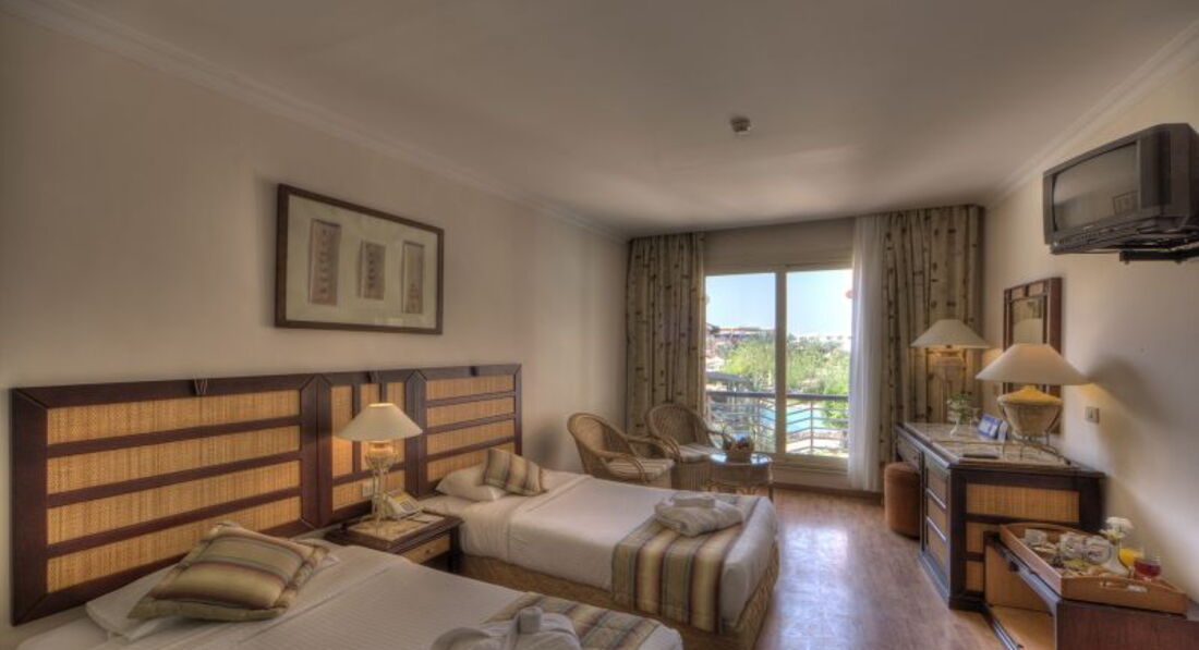 В Египте отдыхали 1-ый раз, впечатления остались хорошие от отдыха, но не от самого отеля. Не дотягивает даже до четвёрки. Горячей воды в номерах нет, вай фай платный и только в лобби, номера без доплаты видом упираются в стену. Хочешь что-то нормальное – плати. Для тех, кто едет насладится территорией вокруг, морем, инфраструктурой рядом - самое то, но те, кому важен сервис в самом отеле - вам точно не сюда. Есть куда выйти погулять вечером, рядом базарчик, кафе, магазины, прекрасная территория самого отеля, 3 бассейна, близко к аэропорту. Район вокруг очень не плохой, относительно молодой. Очень понравился дизайн и стиль отеля. Площадь участка огромная, каждый найдет для себя укромное место здесь. Минус только в том что надо запустить и пустить новую кровь в жизнь отеля, так как он долгое время был закрыт. Говорили нам перед поездкой, что отель реконструировали, но это не заметно. Кстати, цены в бутиках очень даже нормальные в некоторых случаях даже лучше, чем на улице. До пляжа идти прилично, дойдешь и ещё так же прилично надо пройтись, чтобы в глубине нырять. Рыбок и прочей морской красоты вы тут вряд ли найдёте, только по минимуму, это не то богатое Красное море, которое рассчитывали увидеть. Но зато мы вдоволь наездились по шикарным экскурсиям. {удалено модератором: несанкционированная реклама}Может быть из-за малого количества гостей, (хотя ноябрь), но скорее всего уже просто отель умирает, выжимая последнее. Уборка номеров состоит из ненужной и неудобной заправки кровати и доставки 1л. воды. Плохое освещение в комнатах и коридорах. Есть практически нечего. Напитки все, пить невозможно. Завтраки на протяжении недели были одинаковые (без малейших изменений), да и вообще еда в этом отеле оставляет желать лучшего. Еда повторялась, но выглядело всё так, что бы создать больший выбор, только создать, не более. Ежедневно 2 супа, рис и картофельное блюдо, пюре, салаты. Мясо готовилось по-разному с овощами и салатом, но одинаковое на вкус. Морепродуктов нет. Рыбы почти тоже, только несколько раз видели на столах, и только в кляре, или так же как и мясо с овощами. Обед, ужин лучше, выбор чуть больше. На просьбы на рецепшене реагируют очень и очень туго, а порой просто игнорируют. Просил починить сейф раз 10 на протяжении 2 дней что бы кто-то пошевелился, попросил нитку 3 раза ждал 2 дня и так далее. Вообще итог такой, если Вам безразлична еда и обслуживание - тогда вариант интересен.