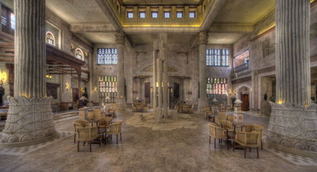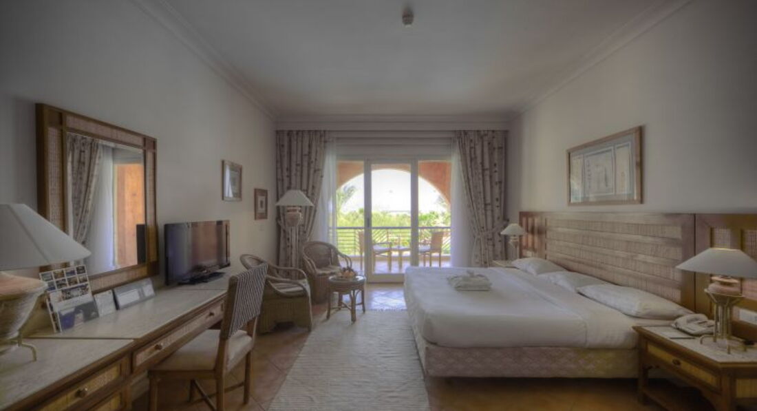Выбор отеля состоялся прямо в турагенстве за пару часов до вылета. По фото понравился: 5*, 1 береговая, мягкий вход в море. Но настоящие впечатления, конечно,составили только при прилете. Близко к аэропорту (привезли первыми), приглушенный свет в отеле всегда - стилистика под пещеру, интересно с учетом того что отдыхаешь в Египте! Номер (с небольшой доплатой) дали просторный. 2 этаж с видом на огромную территорию отеля, бассейны, и вдали море... ПРи уборке не всегда меняли полотенце либо не в нужном количестве.