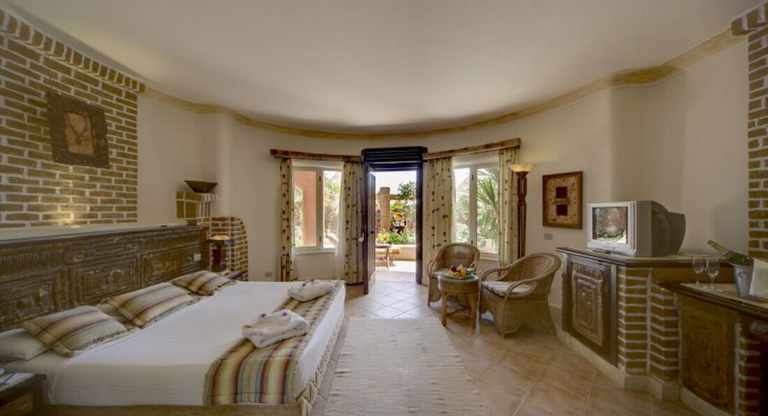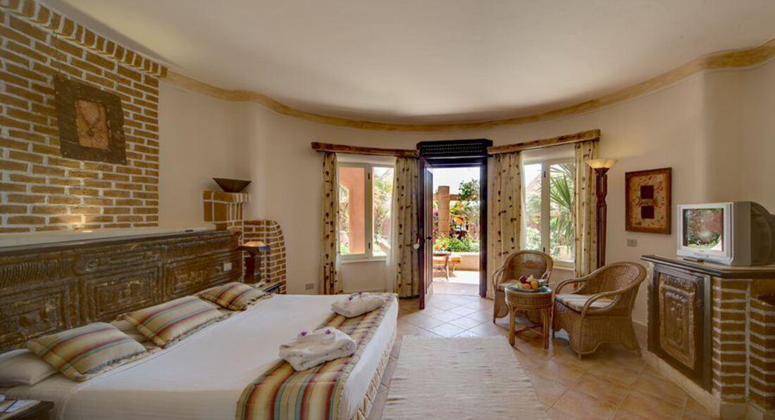 Ехали с мужем первый раз в Египет, выбрала этот отель за красивую территорию и симпатичные бунгало) Прилет у нас был поздний, хоть и аэропорт совсем рядом с отелем - приехали когда уже темнело. Наглый администратор напрямую потребовал с нас шоколадку за то что бы вселить в хороший номер у бассейна, якобы он только что освободился. Так как мы уже начитались отзывов о шоколадках - они у нас были) Отдав презент - нас проводили в 2-х этажное бунгало (129) на 1-й этаж, номер очень понравился, большой, аккуратный, 2 огромных шкафа для одежды, сейф, зеркала, туалетная/душевая комната тоже огромная, вообщем, если не зацикливаться на мелочах типа подтекающего крана или отсутствия мыла в диспенсерах, то все супер). Кондиционер спрятан за столом, естественно, после починки, заработал как новый, уходя можно было не выключать ни его, не свет, никого там видимо не волнует экономия электричества)