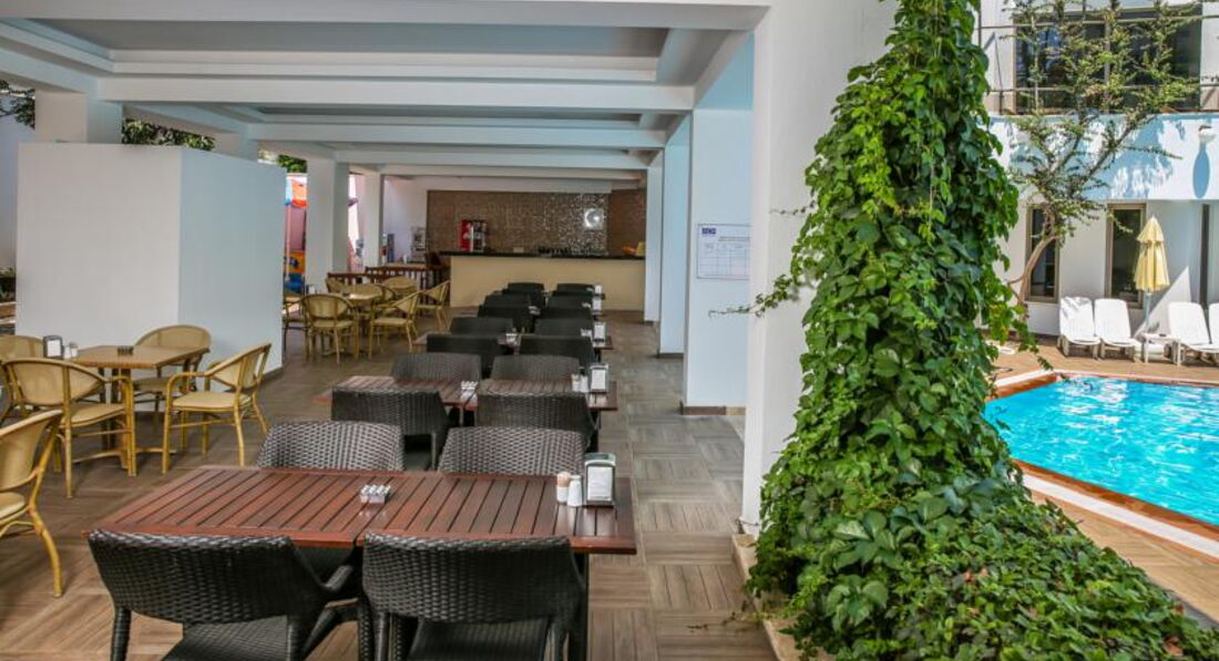 Бари та ресторани: головний ресторан розрахований на 300 осіб (критий, з кондиціонером, дитячі стільці), лобі-бар (24 години), бар біля басейну (10:00-18:00).