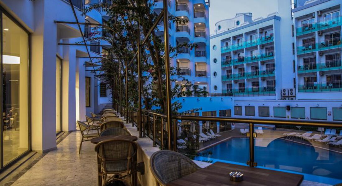 Отель, как и все непосредственно в Мармарисе, а не в поселках - городского типа (т. е. минимум территории). Одно из достоинств - большой для таких отелей бассейн во внутреннем дворике. Чисто, аккуратно. Отдыхают преимущественно европейцы - в основном UK и Польша. Персонал не говорит по-русски.