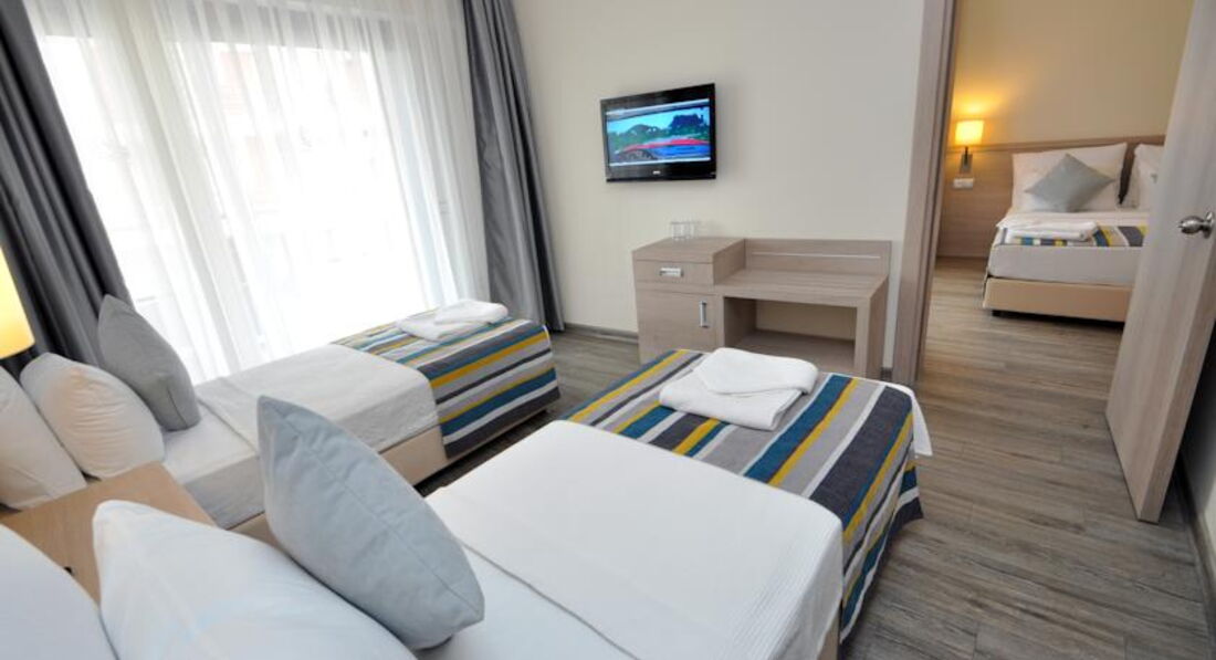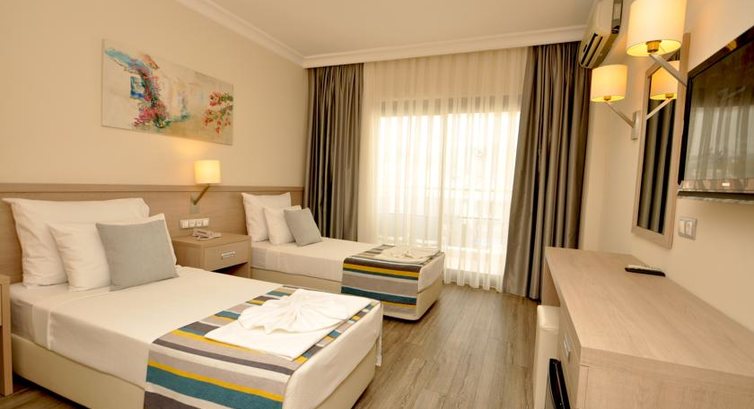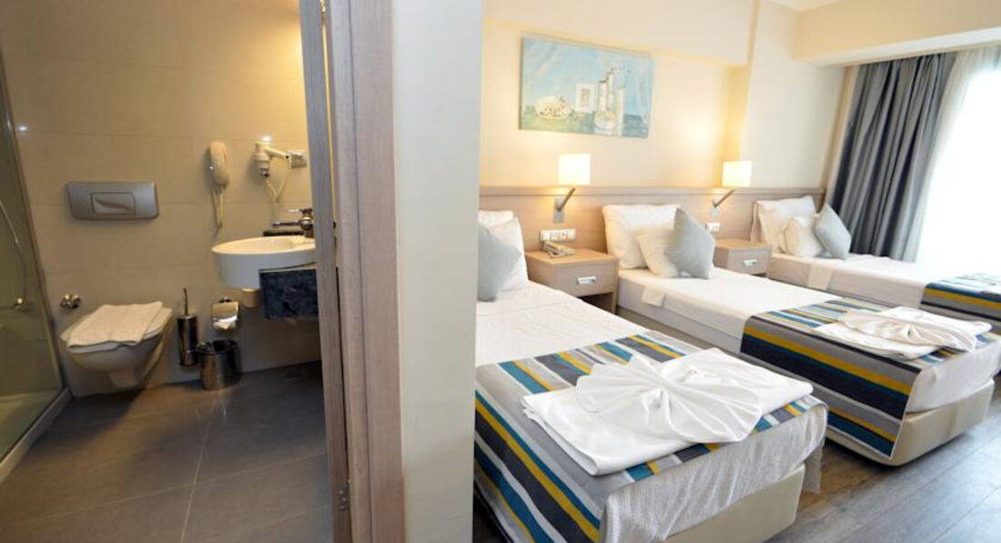 Заселили молниеносно, не смотря на то, что приехали утром к завтраку. Номера отремонтированы вроде бы как недавно, но все же видно что староват отель. Все отели на побережье в центре Мармарисе старые. Видела только пару приличных. Остальные что 3*,что 5* выглядят так себе.