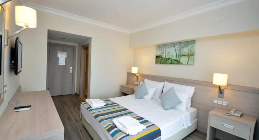 Были с подругой в конце июня 2014, летели с Tui, купили путевку он-лайн на viasun, быстро и без всяких заморочек. Прибыли в отель ночью, на ресепшене поставили подписи под анкетами и нас проводили в подготовленный номер. Вся процедура заселения заняла 3 минуты, это очень порадовало, потому что было 3-4 часа ночи и безумно хотелось спать... Из аэропорта в отель дорога заняла примерно 2 часа. Номер чистый уютный все новенькое, хорошая мебель, балкон, для двоих в самый раз. Кондиционер есть, но мы не сразу поняли как работает))) надо плотно двери на балкон закрывать!!! а то он вырубается))) На ТВ есть русские каналы. За сейф надо заплатить 25$. Убирались хорошо. Несколько раз полотенца меняли за неделю.