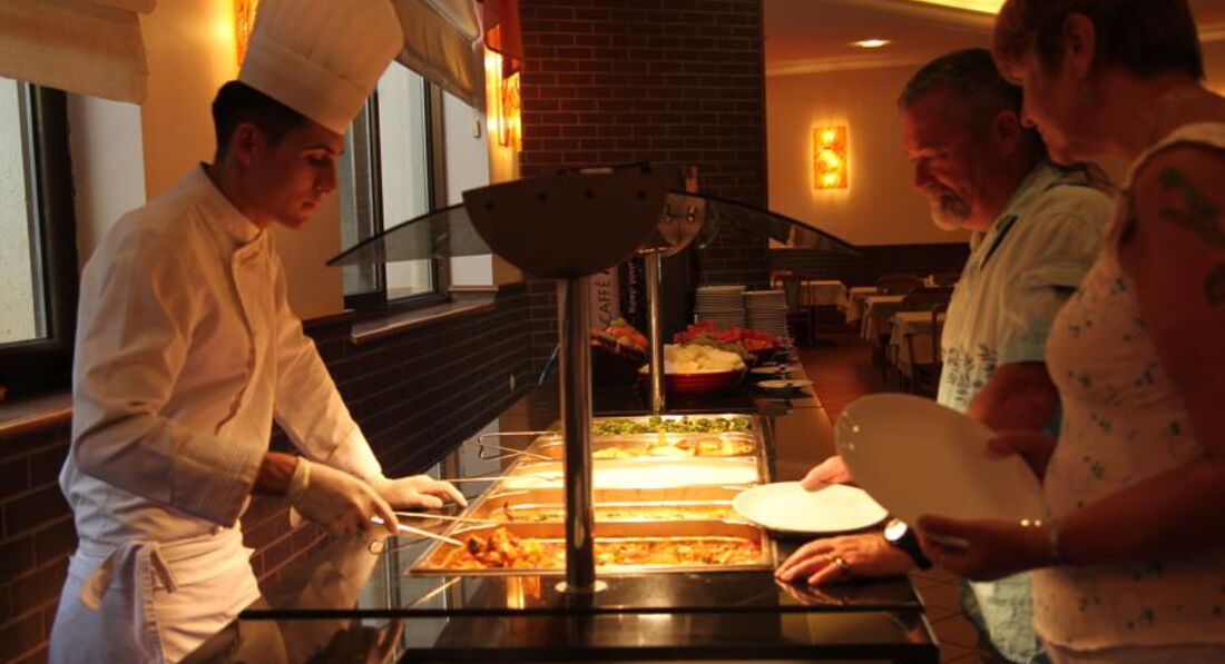 Включає: сніданок, вечеря - шведський стіл; напої за додаткову оплату. Молодятам – кошик із фруктами та вино, постійним гостям – кошик із фруктами, іменинникам – торт.