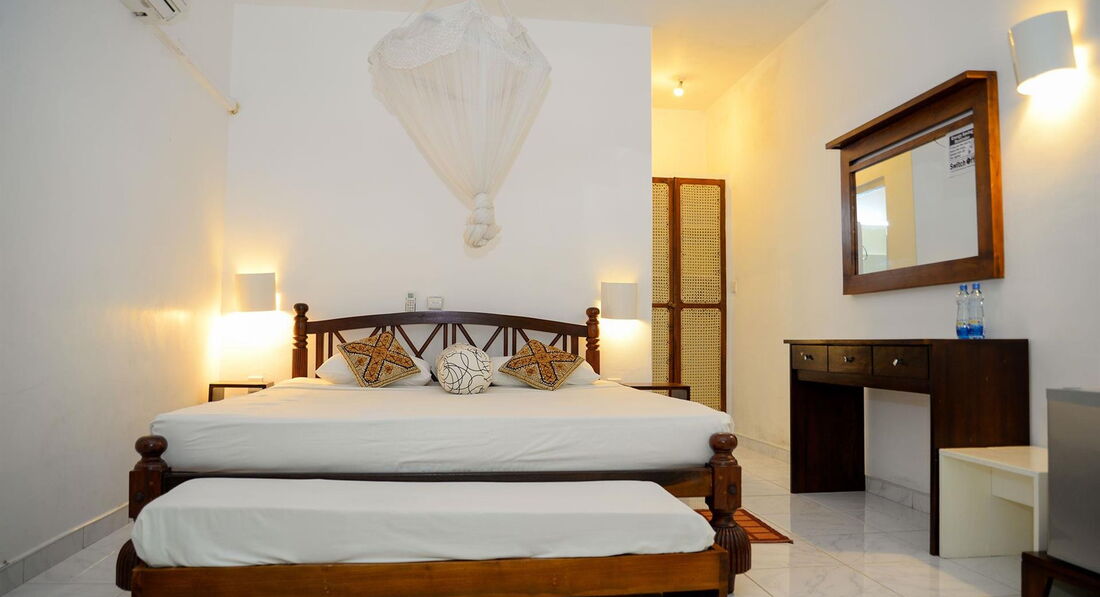 Типи номерів: • 8 Deluxe (макс. 2 дор. + 2 дит.) - спальня, ванна кімната, 2 номери з балконом, 6 номерів з терасою, вид на лагуну • 7 Super Deluxe (макс. 2 дор. + 2 дит.) - спальня, вітальня зона, міжкімнатних дверей немає, ванна кімната, 6 номерів з балконом, 1 номер з терасою, вид на лагунуУ номері: • душ • фен • індивідуальний кондиціонер • телевізор (2 російськомовні телеканали) • DVD (за запитом) • Wi-fi • сейф • електричний чайник (за запитом) • міні холодильник • прасувальна дошка та праска (за запитом) • питна вода (0,5 л/день) • набір для приготування чаю/кави (за запитом) • прибирання номерів: щоденно • зміна білизни: щодня