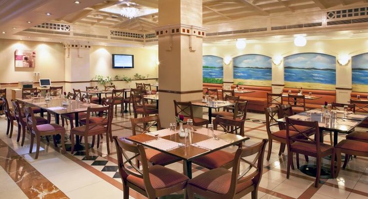 (На заметочку: через дорогу прямо и чуть левее, метров 500, есть комплекс Твин тауэрс (стоит вдоль набережной), так вот на четвёртом этаже есть пара кафе по типу шведского стола. Я веду речь о том из них, которое расположено в дальнем конце 4-этажа (в направлении от гостиницы). За 55 дирхам с человека, которые мы там оставляли, наедались по самое нехочу. Меню обширное и вкусное - мясо различных видов, креветки разнообразные, гарниры, салаты, сладости и фрукты....Чайникек чая за дополнительные 5 дирхам. Всем советую - ничего лучшего по цена-разнообразие-качество я в Дубаях не встретил.)
