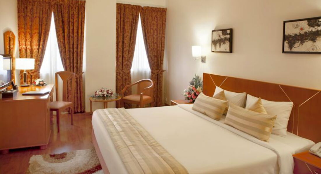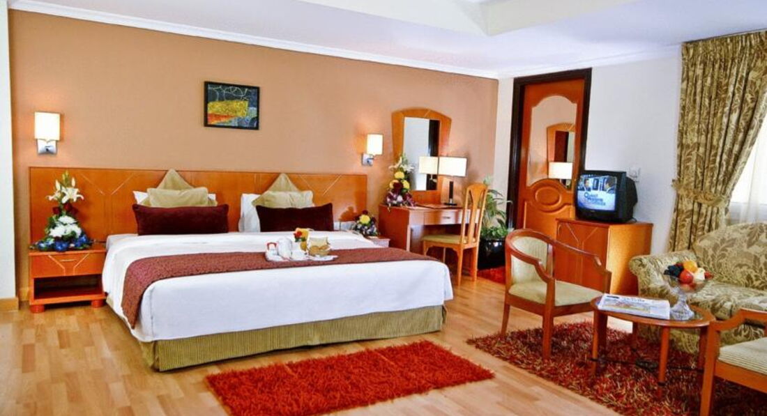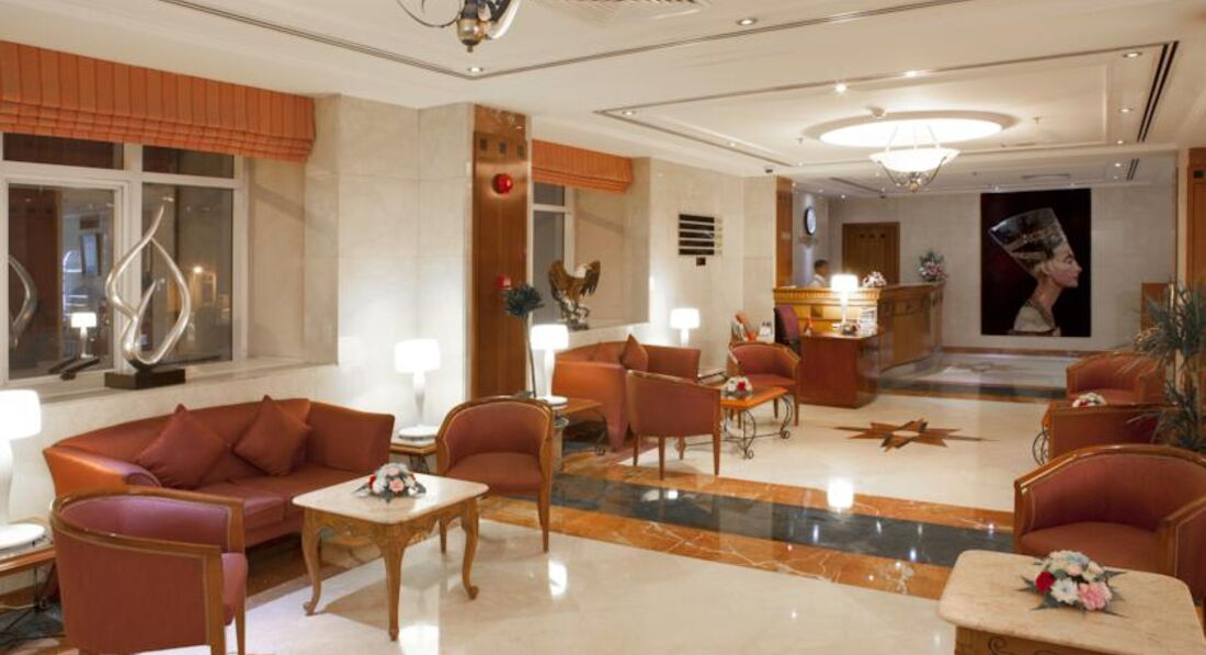 Отель расположен в торговом центре Дейра. Питание: строго завтрак+обед. возможности забронировать по-другому нет. Номера просторные, сейф на ресепшн. Есть бассейн на крыше. Для гостей отеля б\п трансфер на пляж по расписанию. По уровню сервиса превосходит отели равнозначной категории