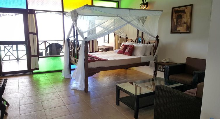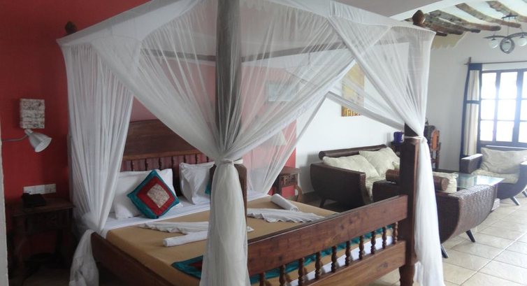 Zanzibari Suite (Номери з яких один знаходиться на першому поверсі, 3 на другому поверсі і 1 на верхньому поверсі або 3-му поверсі, у всіх люксах є власний балкон з видом на Індійський океан. Спальня з великим двоспальним ліжком або 2 односпальними ліжками з москітним сіткою, туалетний столик, софа, офісний стіл, ванна кімната. Найбільші номери готелю.)
