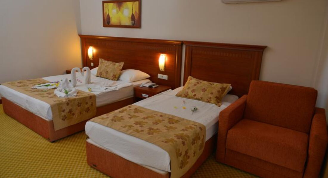 Отдыхала с подругой. Обеим очень понравилось. Чисто, уютно, приветливый и внимательный персонал(было приятно в день рождения получить бутылку шампанского и фруктовую корзинку). Большая территория для прогулки, спортплощадки, море рядом. Питание круглый день неплохое, разнообразное, с турецким колоритом: супчики, мясо и рыба - каждый день, чудесная кондитерка, напитки,соки, пиво, вино, мороженое. В перерывах работы столовой пожалуйста кафе в т.ч. и на пляже. Самостоятельно, на рейсовых автобусах, благодаря администратору, ездили на экскурсии в античный Сиде и Аланью. Будет возможность вернемся сюда снова.