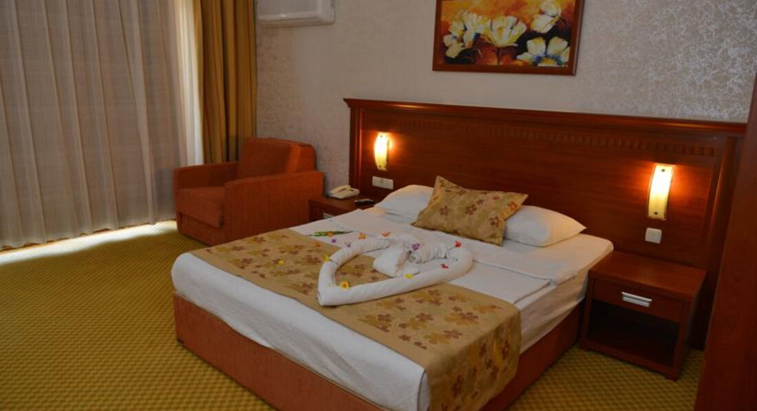 Отдохнули хорошо. Приехали с семьёй в отель поздно в 20.55, нам сразу одели браслеты и отправили в ресторан на ужин (ужин до 21.00), так что голодными не остались) Затем зарегистрировались и прошли в номер. Номер конечно не ах ,были кое какие неполадки, но при обращении на ресепшн, их тут же устранили. Территория при отеле красивая, ухоженная ( постоянно моют и убирают). Хороший большой бассейн,разделённый мостиком. Рядом маленький для детей. Всё очень удобно. До моря недалеко. Несмотря на большое количество отдыхающих, свободные лежаки есть всегда и на море и у бассейна.Так же в ресторане, всегда можно найти свободный столик. Большое спасибо работникам ресторана. Питание понравилось.Что характерно,( видимо, в связи с преобладанием русских туристов) кухня приближена к русской. Очень хочу поблагодарить команду анимации. Особенно девчонок близняшек Женю и Юлю. Работают очень интенсивно, скучать не дают))) Дискотеки каждый день. Через день диско туры в Аланию. За территорией отеля выйти некуда , поэтому ездили своим ходом на автобусе ( проезд 1 доллар). Отдыхом остались довольны.