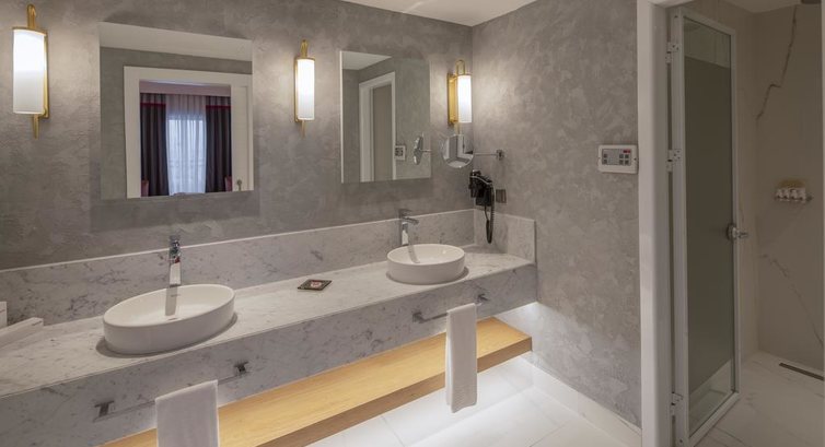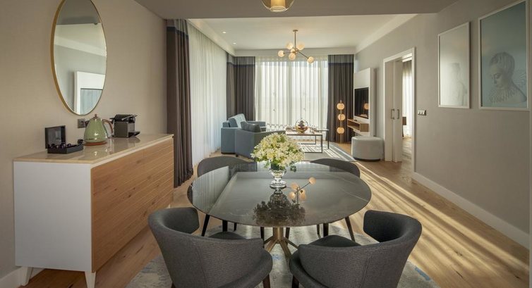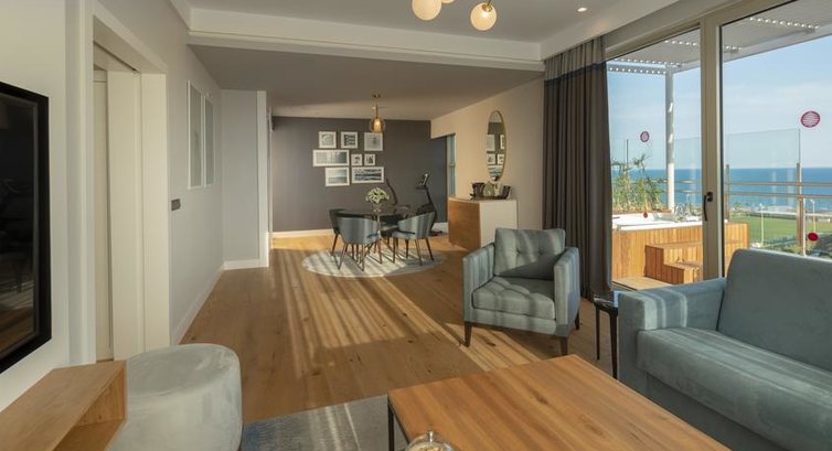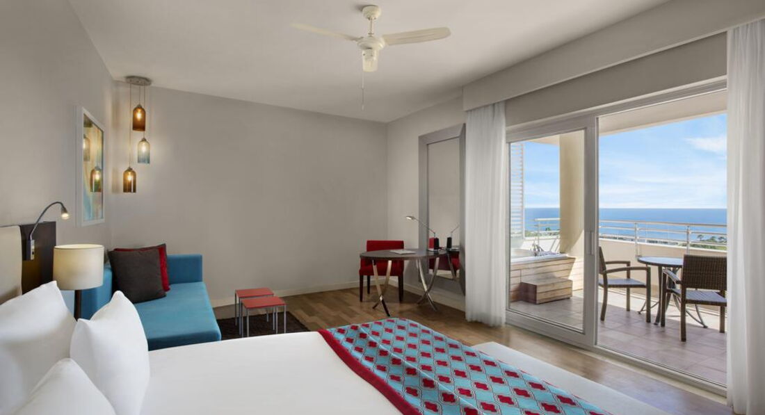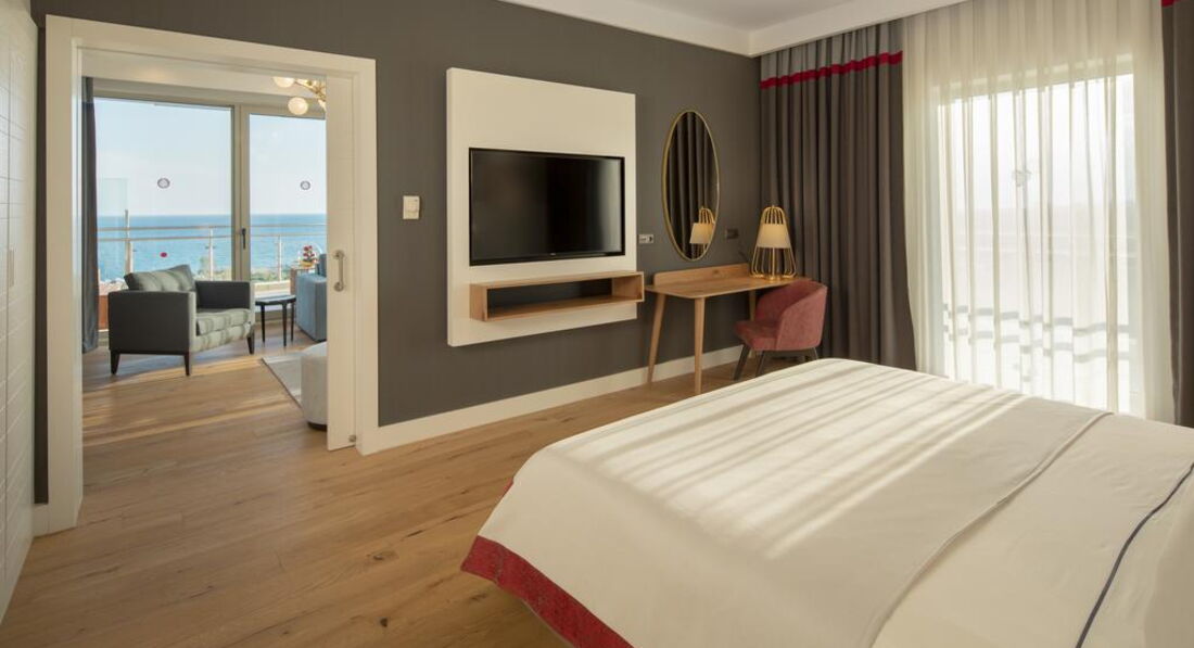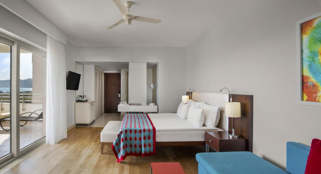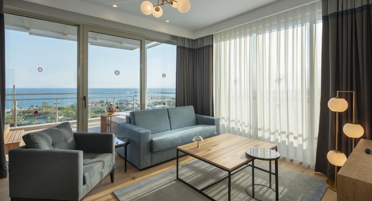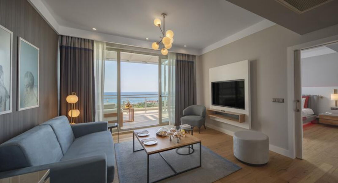 • Grand Designer Suite (головна будівля, 108 кв.м, спальня з розсувними дверима, вітальня, кавоварка, Idoc-станція, , 2 суміщені ванні кімнати, капці, халати, мебльований балкон з видом на море, вид на море)