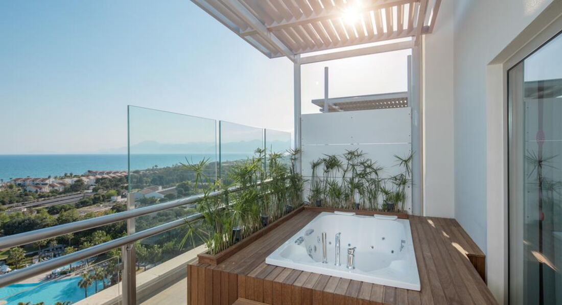 • Designer Suite 360 (головна будівля, 57 кв.м, кругле ліжко, кавоварка, Idoc-станція, вбиральня, мебльований балкон з джакузі, вид на море)