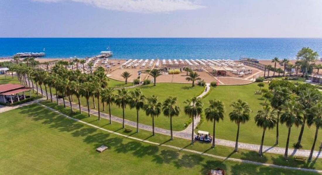 Готель пропонує своїм гостям доглянуту, зелену територію, розкішні номери, смачне, різноманітне харчування, високоякісний сервіс, уважний персонал. Рекомендуємо для вимогливих клієнтів. Готель знаходиться на самому березі моря в Анталії, в районі Лара, за 12 км від центру і за 10 км від аеропорту Анталії. Загальна площа території готелю – 110 000 кв.м. Відкриття готелю – 2005 рік. Остання реновація – 2018 рік. Готель складається з одного 10-ти поверхового головного будинку, і 3-поверхових корпусів Анекс.
