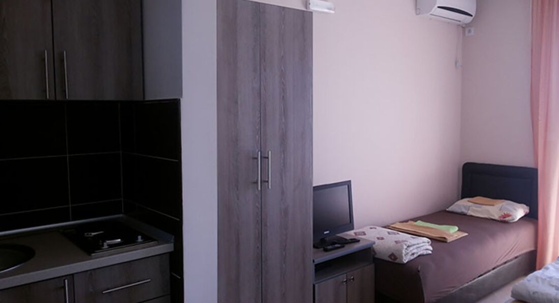 У готелі 20 двох, трьох та чотиримісних студій площею 19-30 м2. Всі номери з балконами та видом на море. На останньому поверсі вілли знаходиться тераса.
