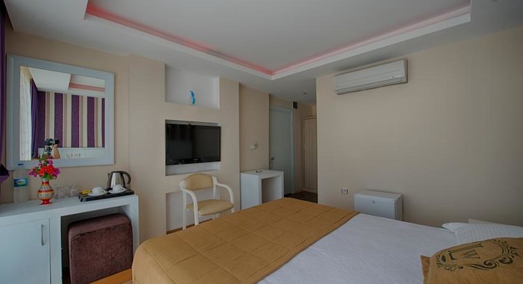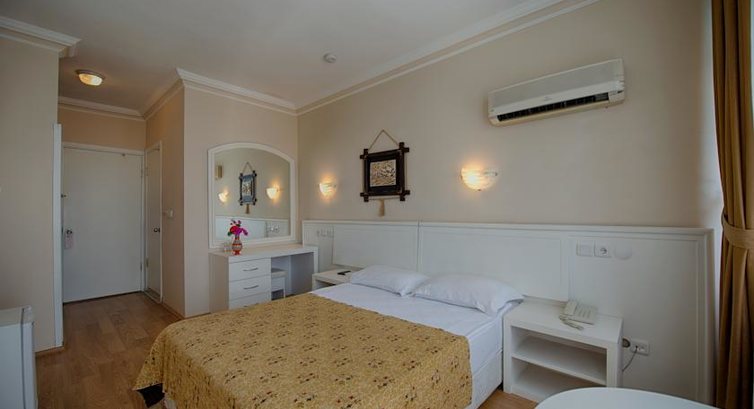 Ну что сказать... мы в этом отеле только сутки провели, т.к. ездили по побережью с родственниками, живущими в Турции. И если рассматривать его как место где поспать, то нормально - в номере была кровать, туалет, холодильник и кондей. Завтрак был включен в оплату номера, мы рискнули только кофе попить и тост съесть. Обедать и ужинать там - буээээ.