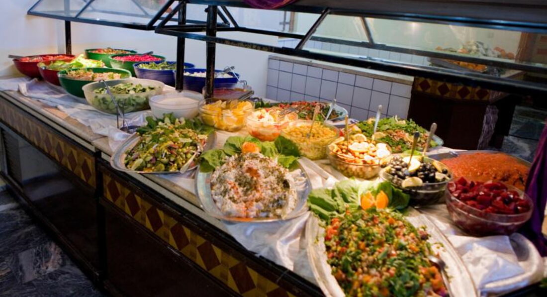 Питание - хорошее, все вкусно, много фруктов и овощей, но в отеле много семей с детьми, а мясо и котлетки острые!